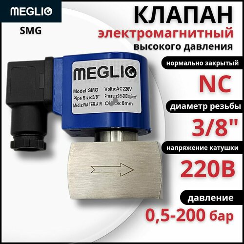 Купить MEGLIO Клапан электромагнитный соленоидный высокого давления SMG 0.5-200 бар 3/8″ 220В нормально закрытый NC с доставкой по всей России. MEGLIO Клапан электромагнитный соленоидный высокого давления SMG 0.5-200 бар 3/8″ 220В нормально закрытый NC: сравнение цен, характеристики, фото, актуальное наличие и цены.