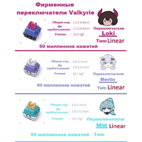 Характеристики:- > Оптимизированная раскладка TKL на 87 клавиш. > Удобная конструкция с прокладкой. > Механические переключатели, разработанные на заказ. > Встроенный TFT-дисплей с диагональю 0,85 дюйма. Пятисторонние колпачки для клавиш из ПБТ, сублимированные красителем. > Удобное трехрежимное подключение. > Динамическая RGB-подсветка. Более 20 Различных световых эффектов. > Тонко настроенные стабилизаторы. > Невероятное время автономной работы. > Бесконфликтная работа с полными клавишами. > Полноклавишные разъемы с возможностью горячей замены. > Размеры: 361.62x134.31x40.6 мм. Линейный переключатель Mist Рабочее усилие: 33±5gf Предварительный ход: 4,0±0,4 мм Общий ход: 2,0±0,5 мм Valkyrie VK87 - компактная трехрежимная механическая клавиатура с раскладкой из 87 клавиш 80% TKL. VK87 имеет оптимизированную раскладку, обеспечивающую комфорт при наборе текста. Valkyrie оснастила клавиатуру цветным экраном с диагональю 0,85 дюйма, который можно настроить с помощью пользовательских анимированных GIF-файлов или изображений. С специально разработанными механическими переключателями, которые значительно улучшают скорость набора текста на клавиатуре! Оптимизированная раскладка на 80%:- Valkyrie VK87 - это компактная механическая клавиатура с раскладкой 80% TKL. Клавиатура состоит из 87 клавиш. Благодаря полному набору функциональных клавиш, группам клавиш home и клавишам со стрелками VK87 подходит для различных сценариев, сохраняя при этом компактный дизайн. Встроенный цветной дисплей:- Механическая клавиатура Valkyrie VK87 оснащена встроенным дисплеем с диагональю 0,85 дюйма. Этот красочный дисплей полностью настраивается, пользователи могут устанавливать анимированные GIF-файлы или просто размещать картинку для статического отображения. Она придает клавиатуре VK87 премиальный и продвинутый современный вид. Индивидуальные механические переключатели и розетки с возможностью горячей замены:- Механическая клавиатура Valkyrie VK87 оснащена специально разработанными механическими переключателями, которые обеспечивают удобную обратную связь при наборе текста. Механические переключатели Mist работают линейно с предварительным ходом 2,0 мм и усилием срабатывания 33 ±5gf. Они имеют небольшое усилие срабатывания и обеспечивают быстрый отскок при нажатии клавиш, поэтому обратная связь при наборе текста будет удовлетворительной. Для энтузиастов клавиатура также поддерживает полноклавишные разъемы с возможностью горячей замены, что позволяет легко заменять переключатели. Удобная конструкция прокладки:- Набор текста на механической клавиатуре Valkyrie VK87 происходит плавно и доставляет удовольствие. Клавиатура имеет конструкцию с прокладками, которая придает клавиатуре ощущение эластичности. Набор текста на клавиатуре обеспечивает удобную обратную связь, что делает ее пригодной для длительного использования. Универсальные варианты подключения:- Подключайте клавиатуру Valkyrie VK87 по своему усмотрению с помощью трех режимов подключения. Клавиатура поддерживает беспроводную связь Bluetooth V5.1, 2,4 ГГц и проводное подключение USB Type-C. Клавиатура также поддерживает простое переключение между системами Windows и Mac. Динамическая RGB подсветка:- Механическая клавиатура Valkyrie VK87 оснащена функцией динамической RGB-подсветки. Клавиатура оснащена 20 встроенными световыми эффектами для полной настройки с помощью различных ре