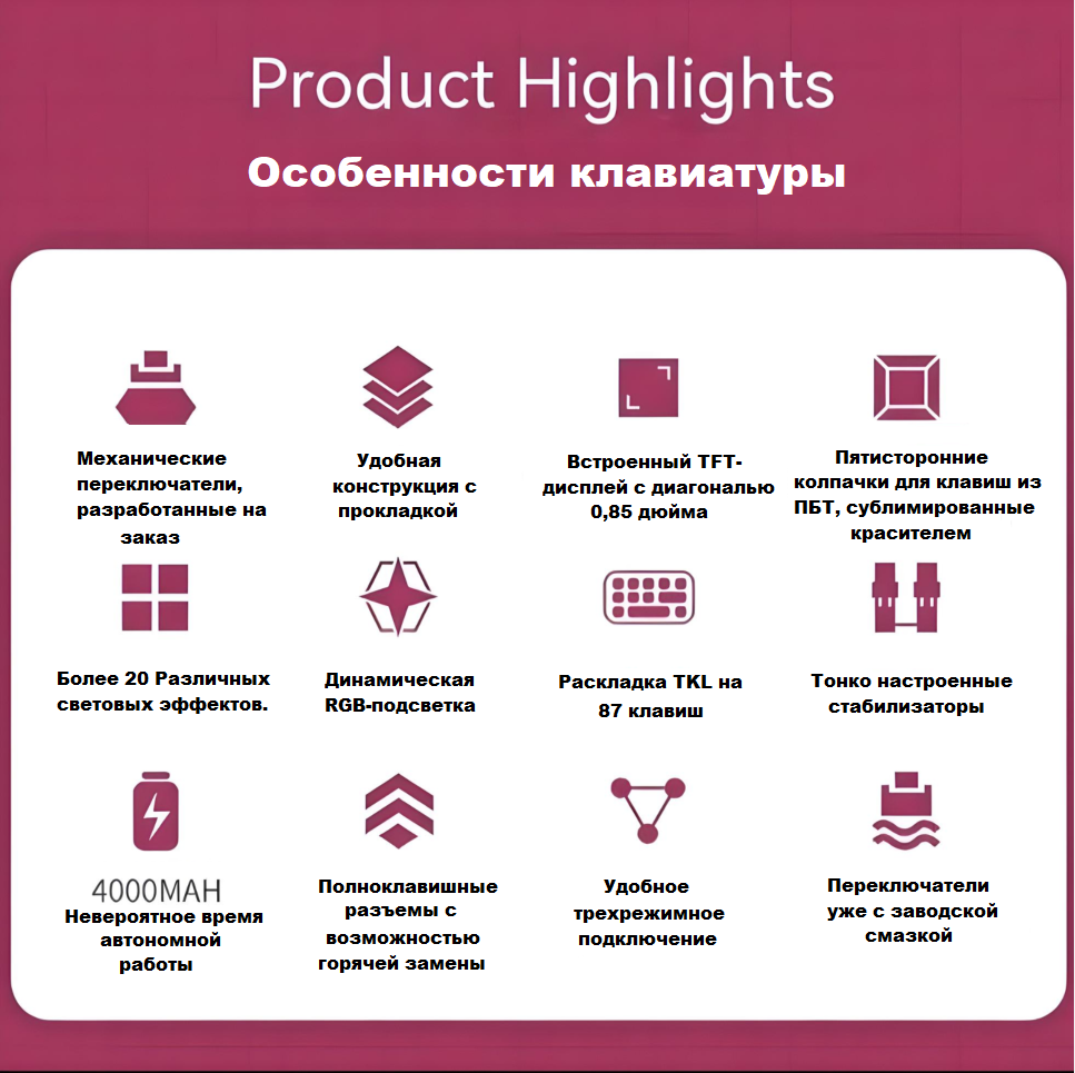 Механическая игровая беспроводная клавиатура VALKYRIE VK87-Merlin. Бело-фиолетовая. Русская раскладка.: сравнение цен, характеристики, фото, актуальное наличие и цены.