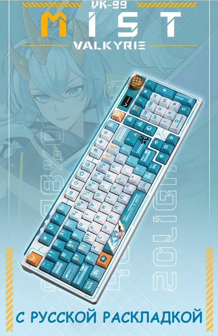 Механическая игровая беспроводная клавиатура VALKYRIE VK99-Mist. Бело-голубая. Английская раскладка/Русская раскладка.: сравнение цен, характеристики, фото, актуальное наличие и цены.