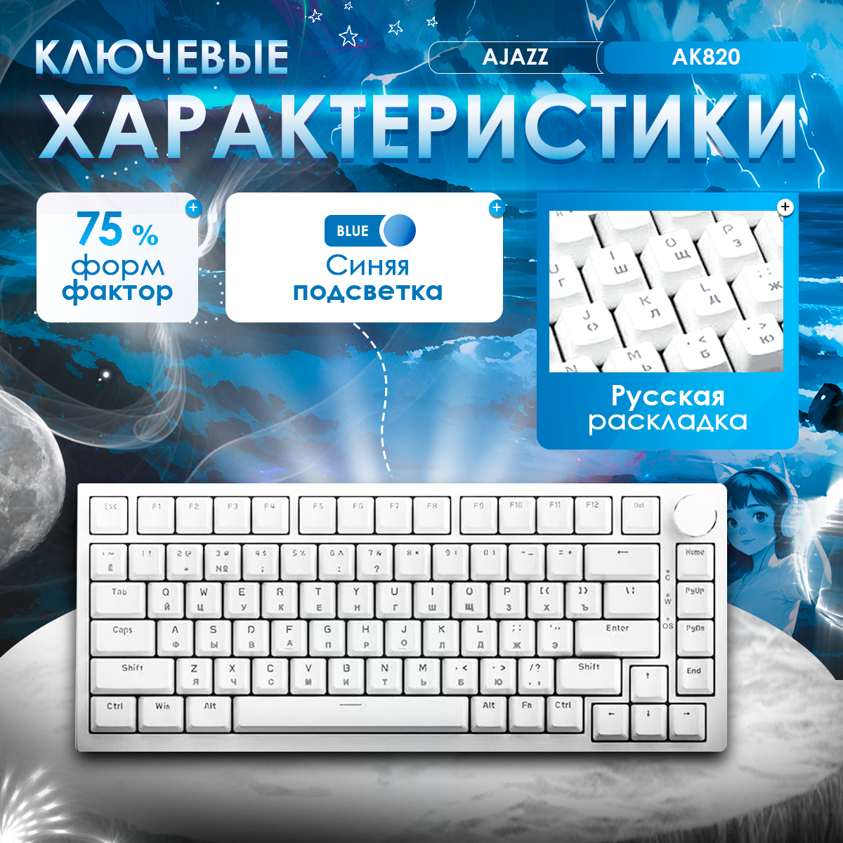 | Комплектация | клавиатура, провод USB Type-C, пуллер для свитчей и кейкапов, руководство пользователя, защитная крышка |