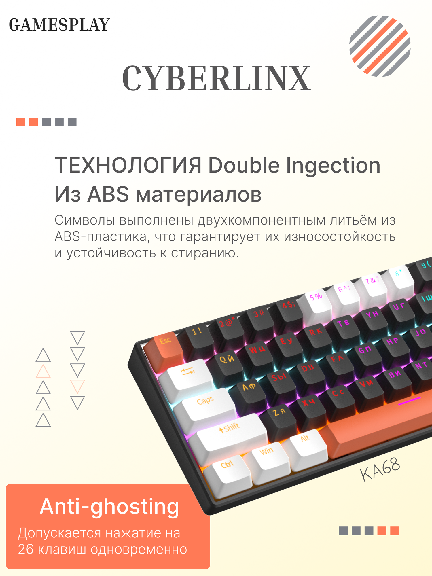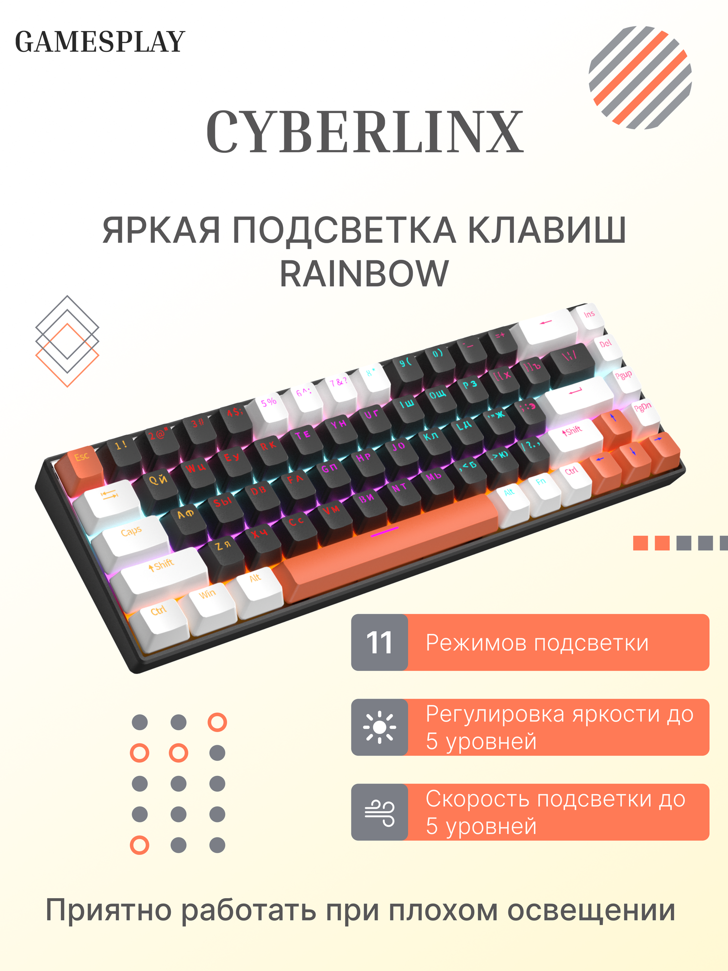 Механическая игровая клавиатура CyberLynx KA68, радужная подсветка, USB 2.0, Red Switch, компактная, приятный звук: сравнение цен, характеристики, фото, актуальное наличие и цены.
