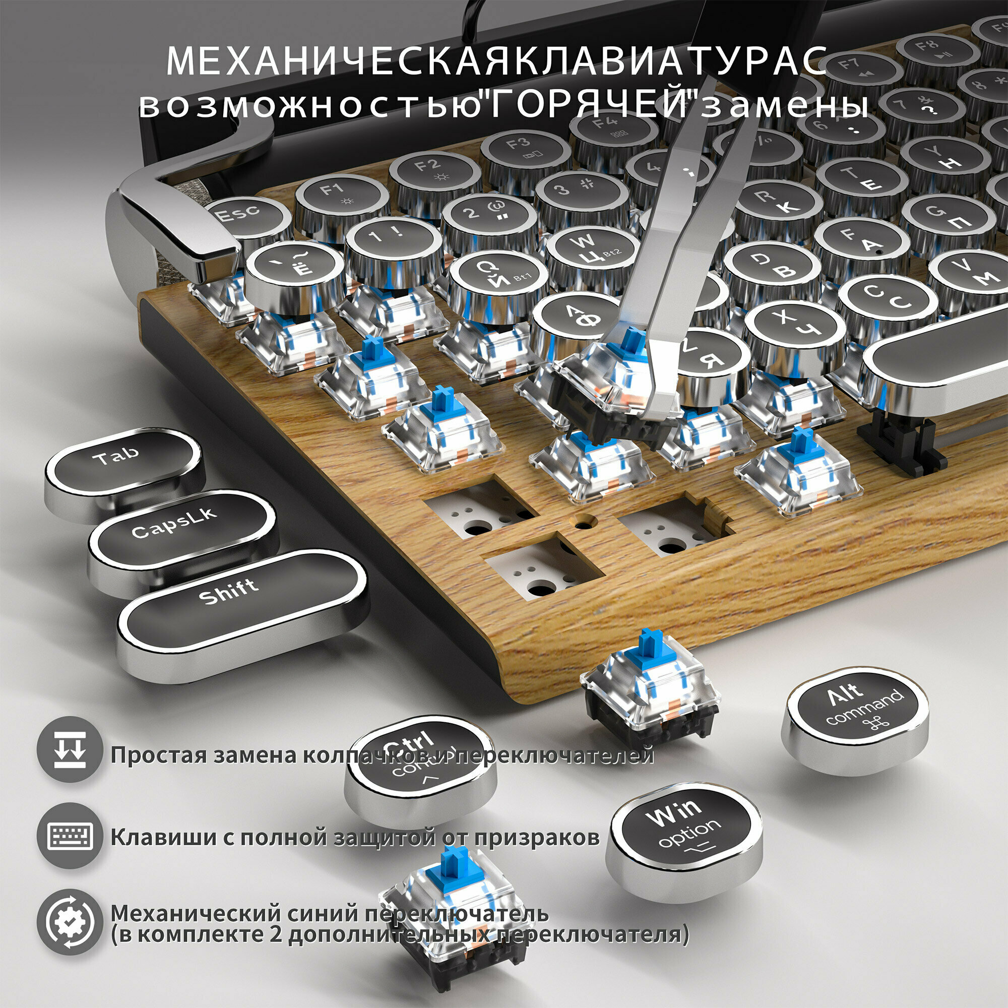 Механическая игровая беспроводная клавиатура в стиле ретро с возможностью горячей замены 83 клавиши, Bluetooth 5.0 + USB, возможность регулировки 14 режимов освещения, подходит для компьютера, ноутбука, мобильных игр, русская /английская клавиатура.: сравнение цен, характеристики, фото, актуальное наличие и цены.