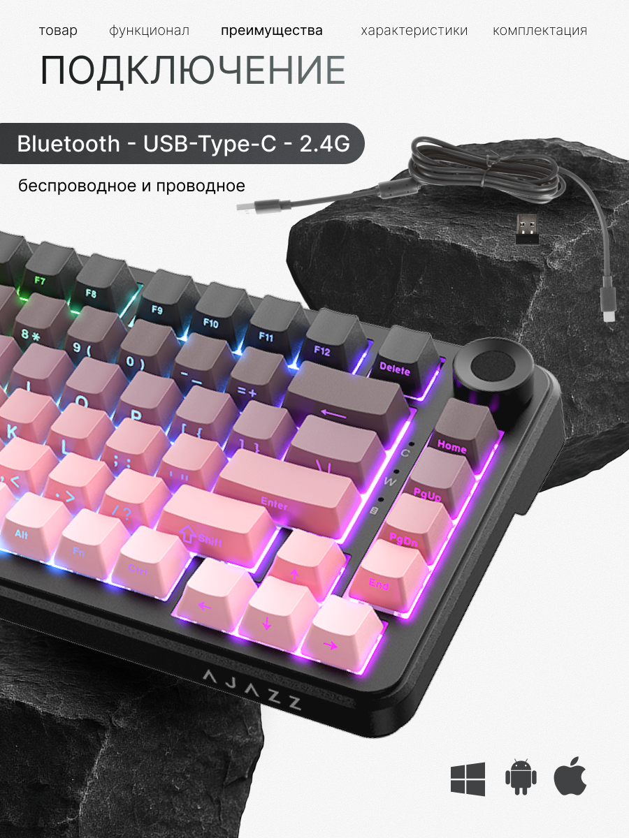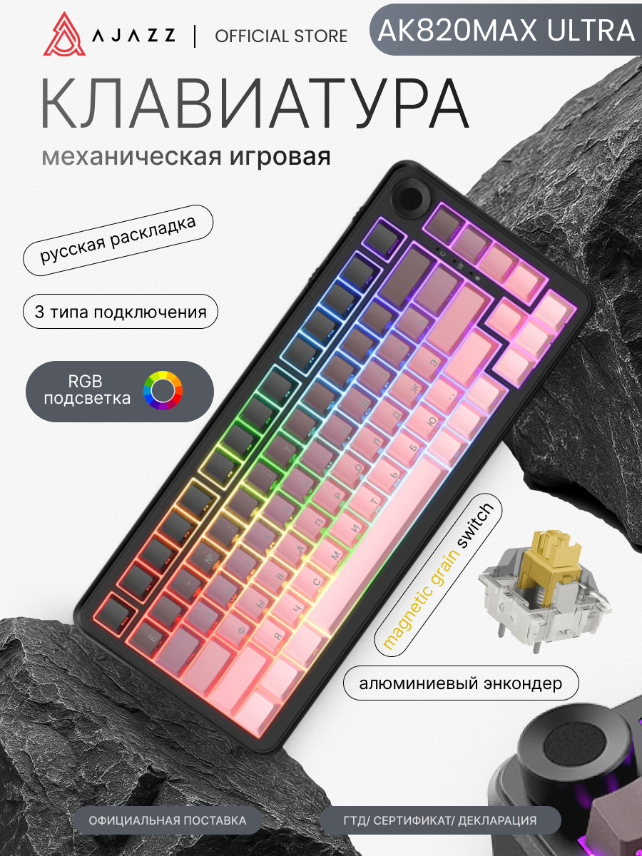 Механическая клавиатура AJAZZ AK820MAX ULTRA, магнитные свичи Hall Effect, RGB-подсветкой, 3 подключения: сравнение цен, характеристики, фото, актуальное наличие и цены.