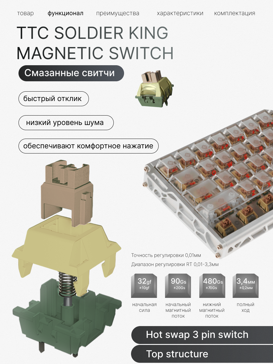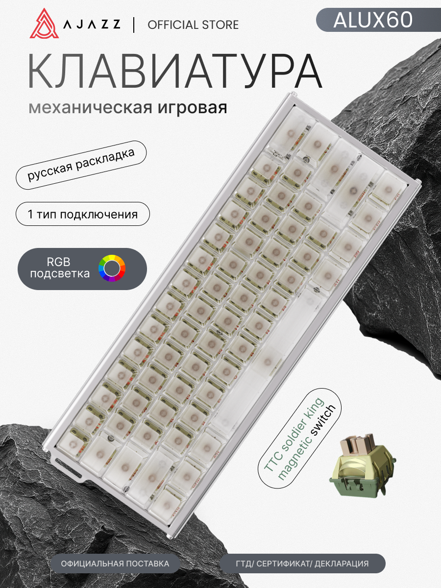 Механическая клавиатура AJAZZ ALUX60, прозрачная, проводная, RGB подсветка, TTC Soldier King magnetic switch: сравнение цен, характеристики, фото, актуальное наличие и цены.