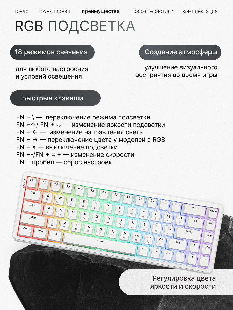 | Подсветка | зональная настройка подсветки клавиш, нет, подсветка клавиш |