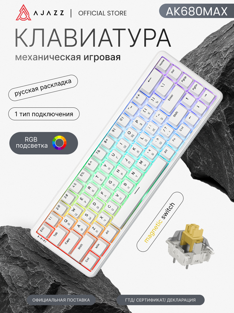 Механическая клавиатура AK680MAX, белая, Magnetic Switch, RGB подсветка: сравнение цен, характеристики, фото, актуальное наличие и цены.