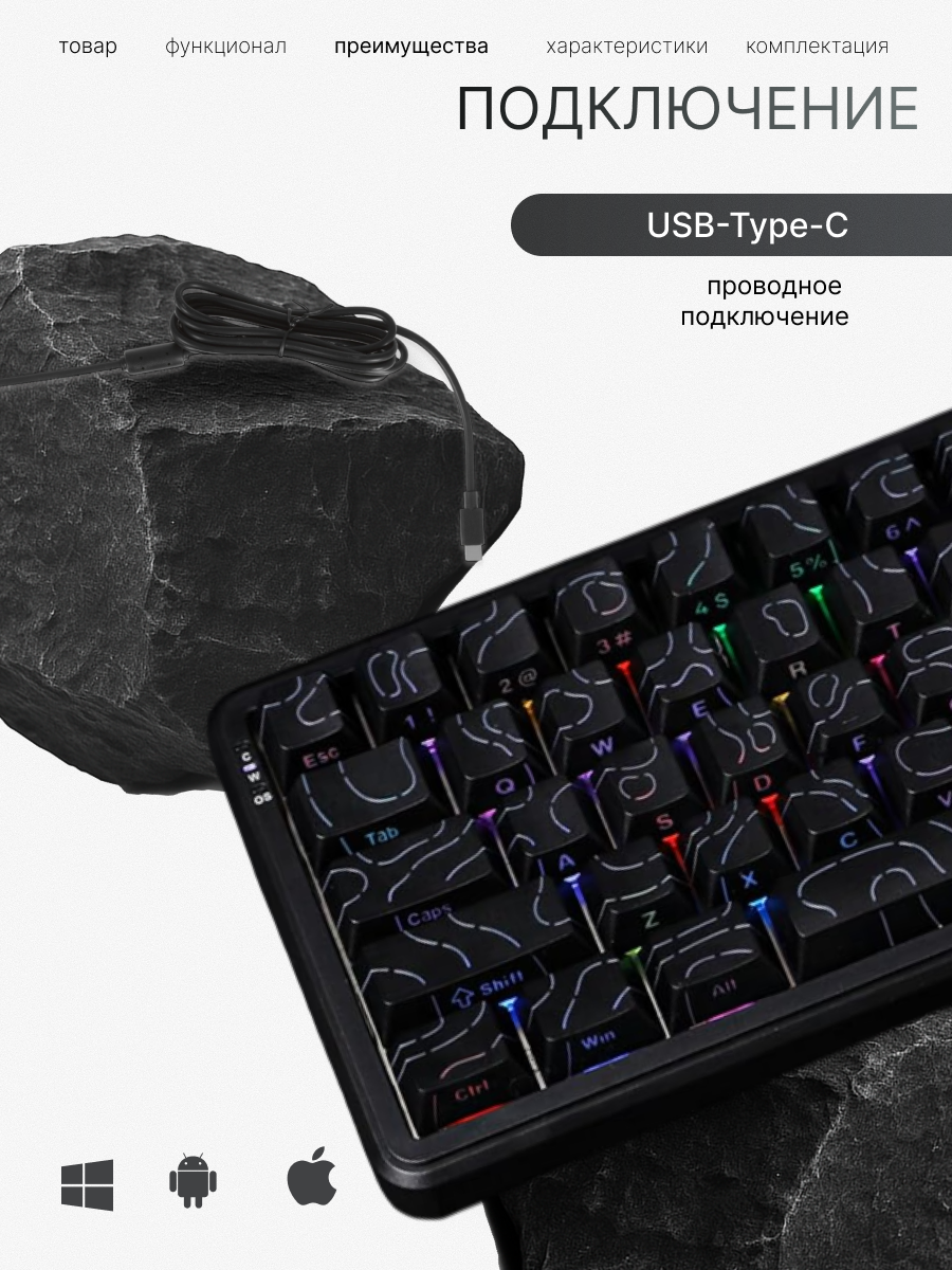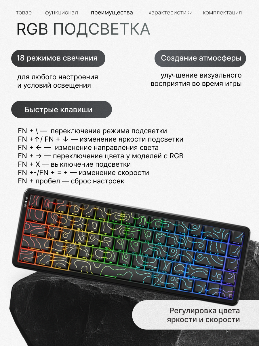 | Подсветка | зональная настройка подсветки клавиш, нет, подсветка клавиш |