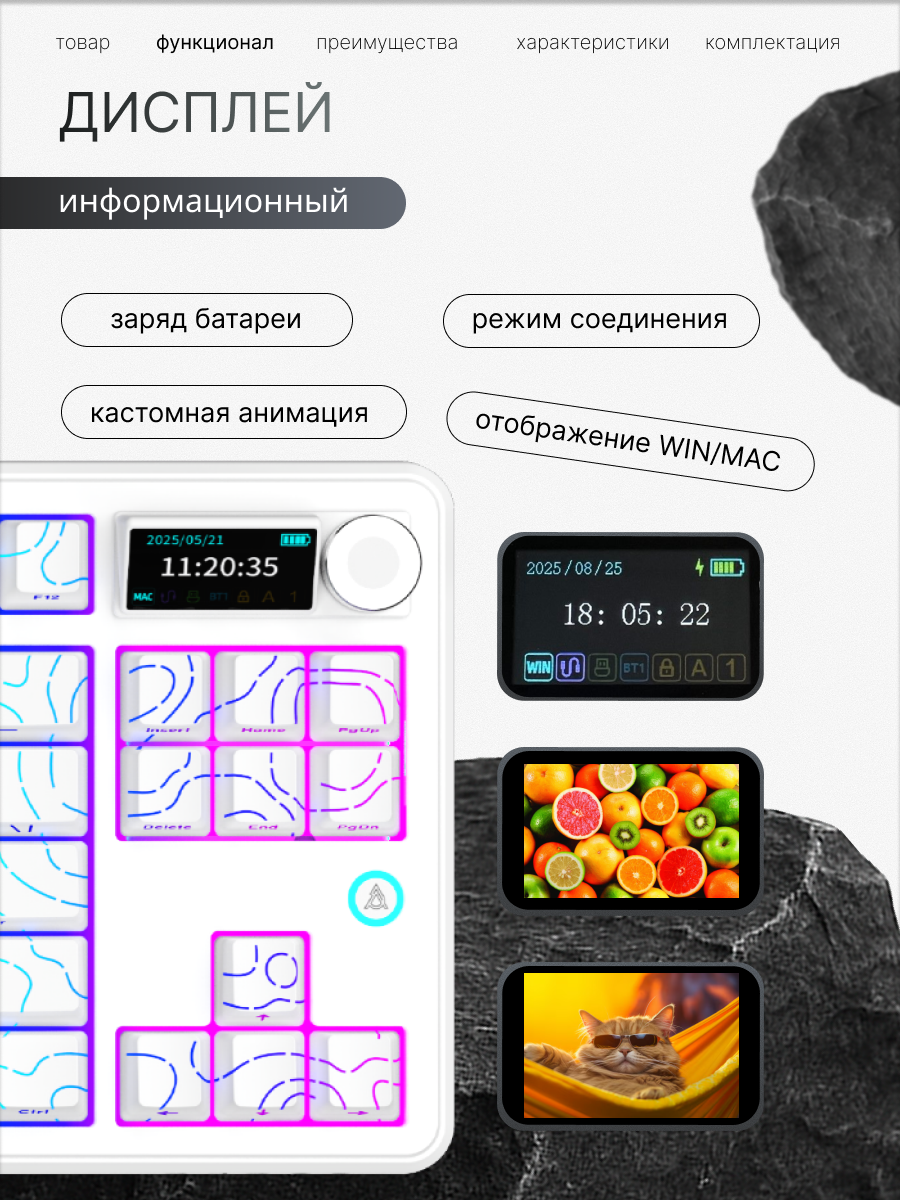 Механическая клавиатура AJAZZ AK870 V2, трехрежимная с экраном, боковая гравировка, ось Майяра (белая контурная линия): сравнение цен, характеристики, фото, актуальное наличие и цены.