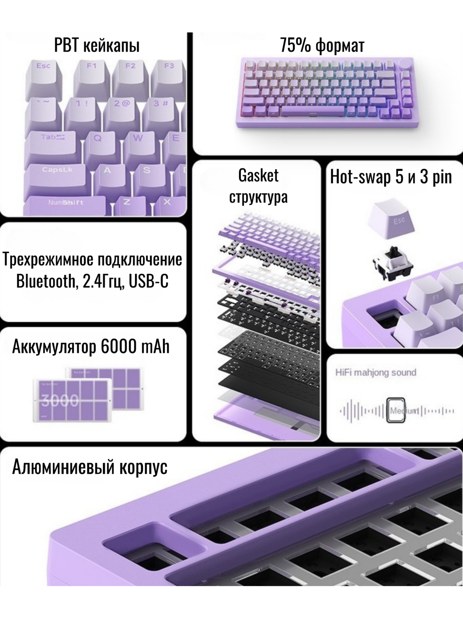 Купить Механическая клавиатура Akko MonsGeek M1W V3 Lilac Purple, (Akko V3 Piano Pro), Английская раскладка с доставкой по всей России.