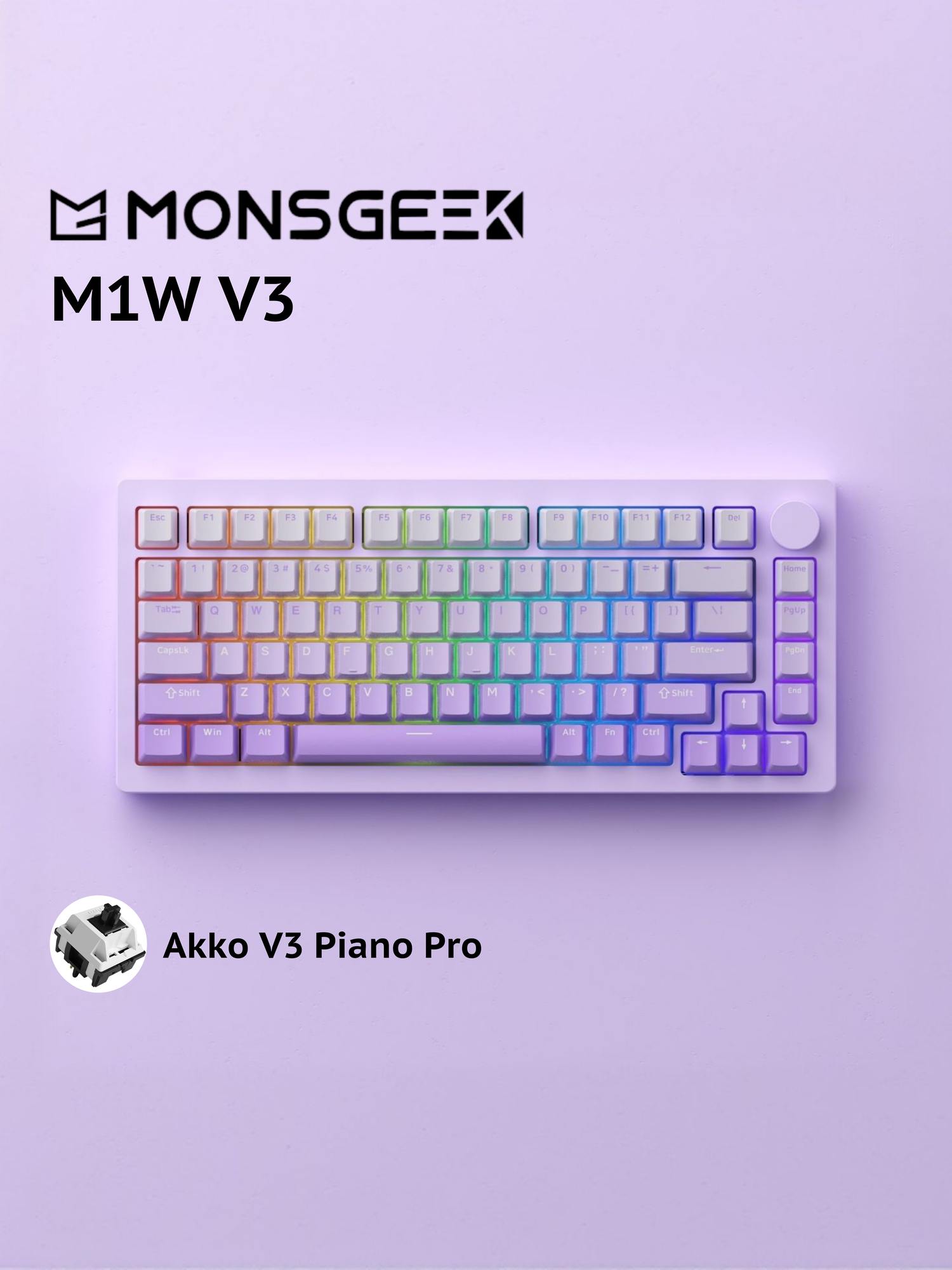 Механическая клавиатура Akko MonsGeek M1W V3 Lilac Purple, (Akko V3 Piano Pro), Английская раскладка: сравнение цен, характеристики, фото, актуальное наличие и цены.