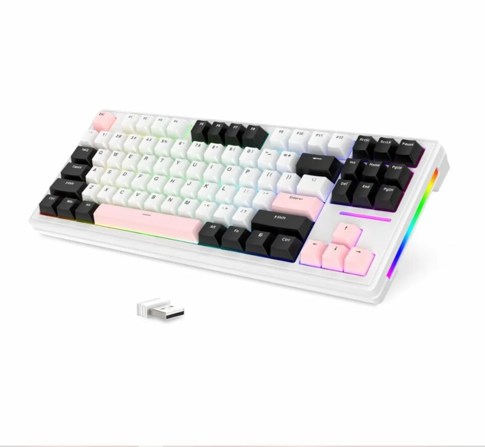 Купить Игровая клавиатура ATTACK SHARK M87 беспроводная Механическая клавиатура TKL 80% Gasket Mount с линейным переключателем, Русская раскладка, Белый/черный/Розовый с доставкой по всей России. Игровая клавиатура ATTACK SHARK M87 беспроводная Механическая клавиатура TKL 80% Gasket Mount с линейным переключателем, Русская раскладка, Белый/черный/Розовый: сравнение цен, характеристики, фото, актуальное наличие и цены.
