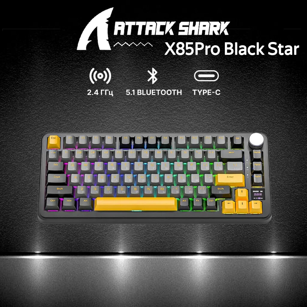 Купить Беспроводная клавиатура Attack Shark X85Pro Black Star (0368) Русская раскладка черный, оранжевый с доставкой по всей России.