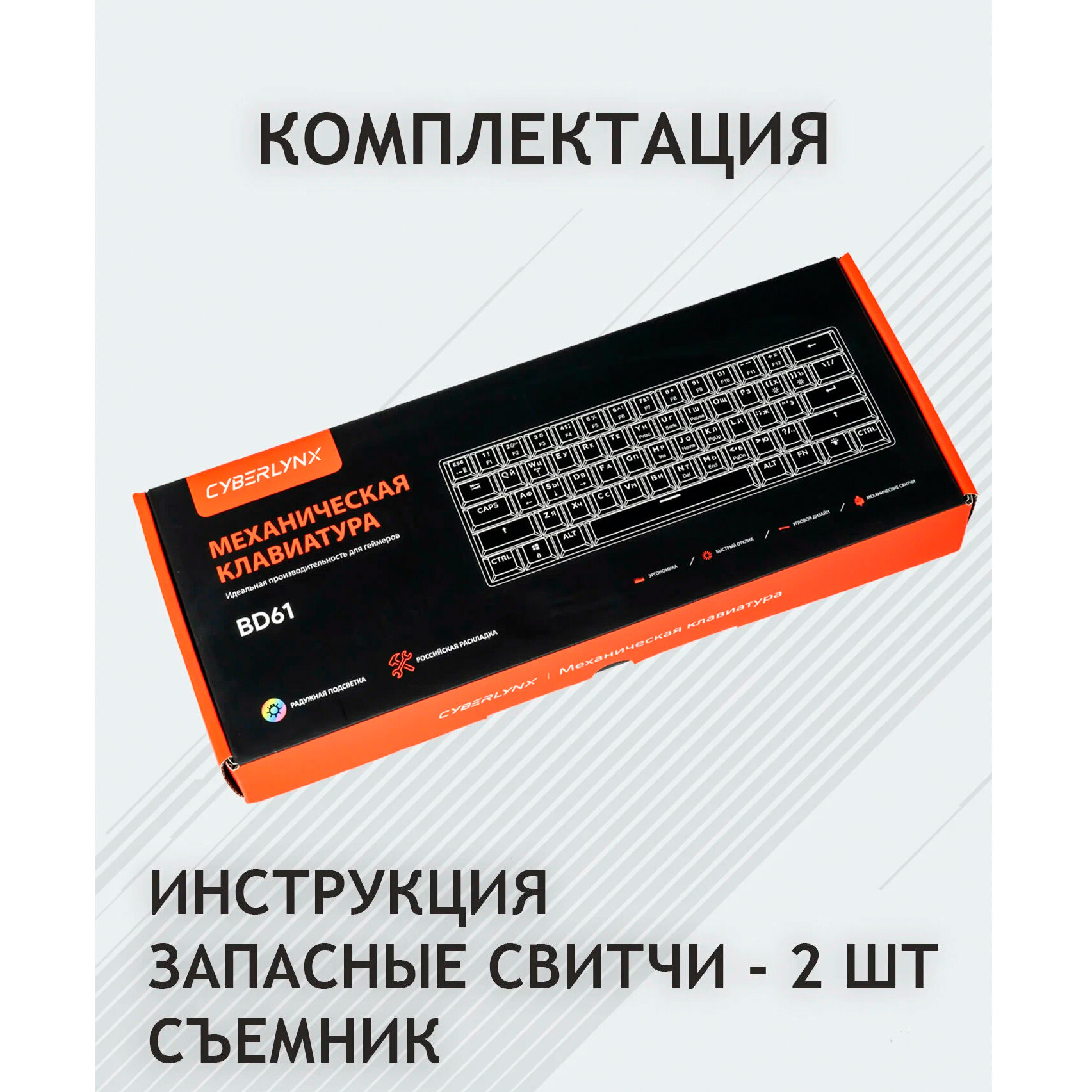 Купить Механическая клавиатура CyberLynx BD61, с RGB-подсветкой, 61 клавиша с доставкой по всей России. Механическая клавиатура CyberLynx BD61, с RGB-подсветкой, 61 клавиша: сравнение цен, характеристики, фото, актуальное наличие и цены.