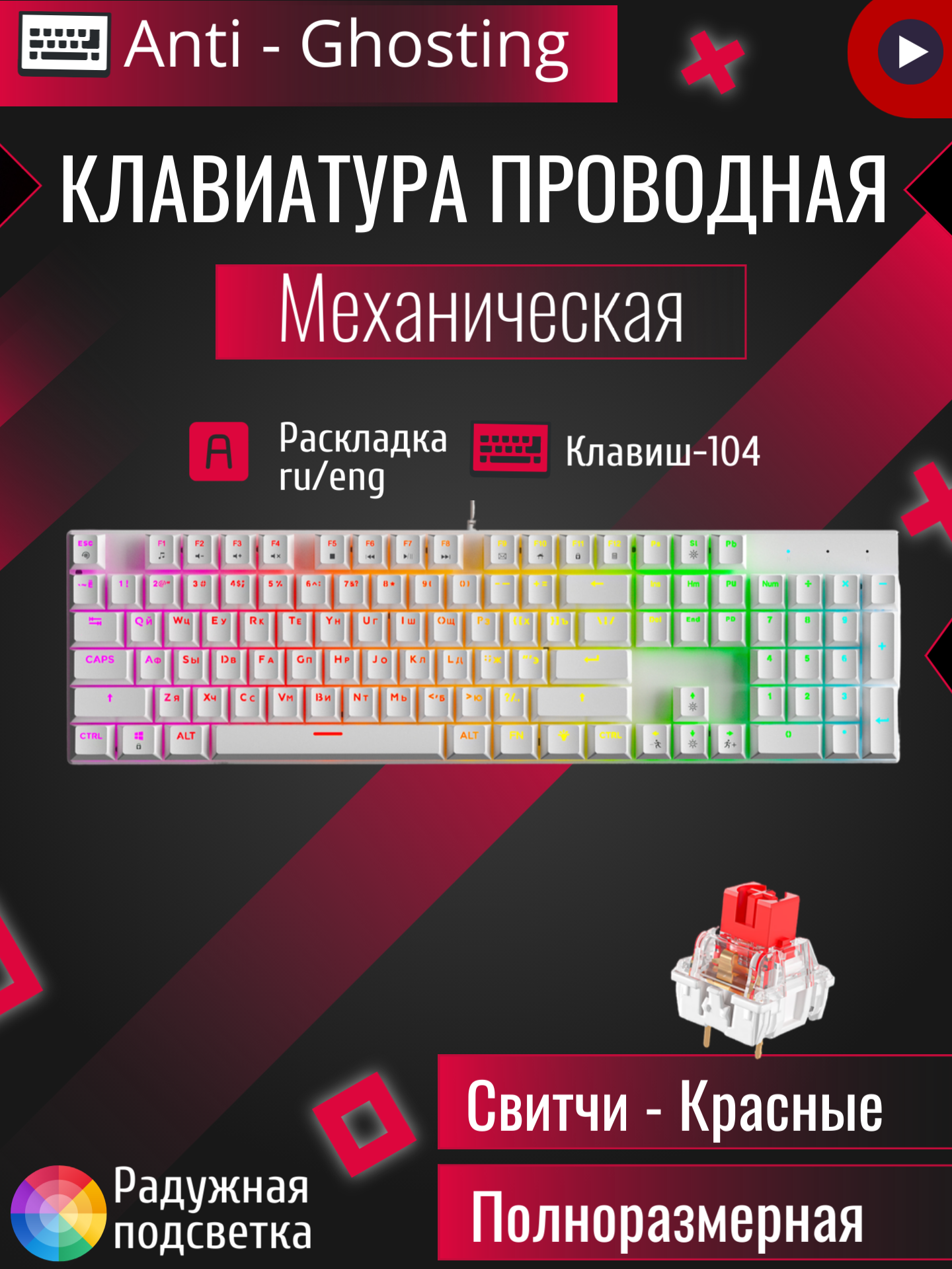 Проводная механическая клавиатура, Cyberlynx, Jixian Red, 104 клавиши, механическая клавиатура с подсветкой: сравнение цен, характеристики, фото, актуальное наличие и цены.