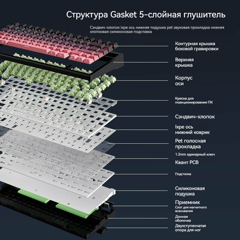 Механическая клавиатура MCHOSE G75Pro, 8000 мАч, переключатель matcha latte v2, Черный розовый: сравнение цен, характеристики, фото, актуальное наличие и цены.