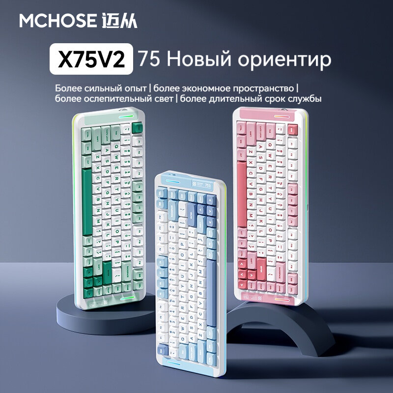 Механическая клавиатура MCHOUSE X75V2, 8000 мАч, Liuguang ice cream switch, белый: сравнение цен, характеристики, фото, актуальное наличие и цены.