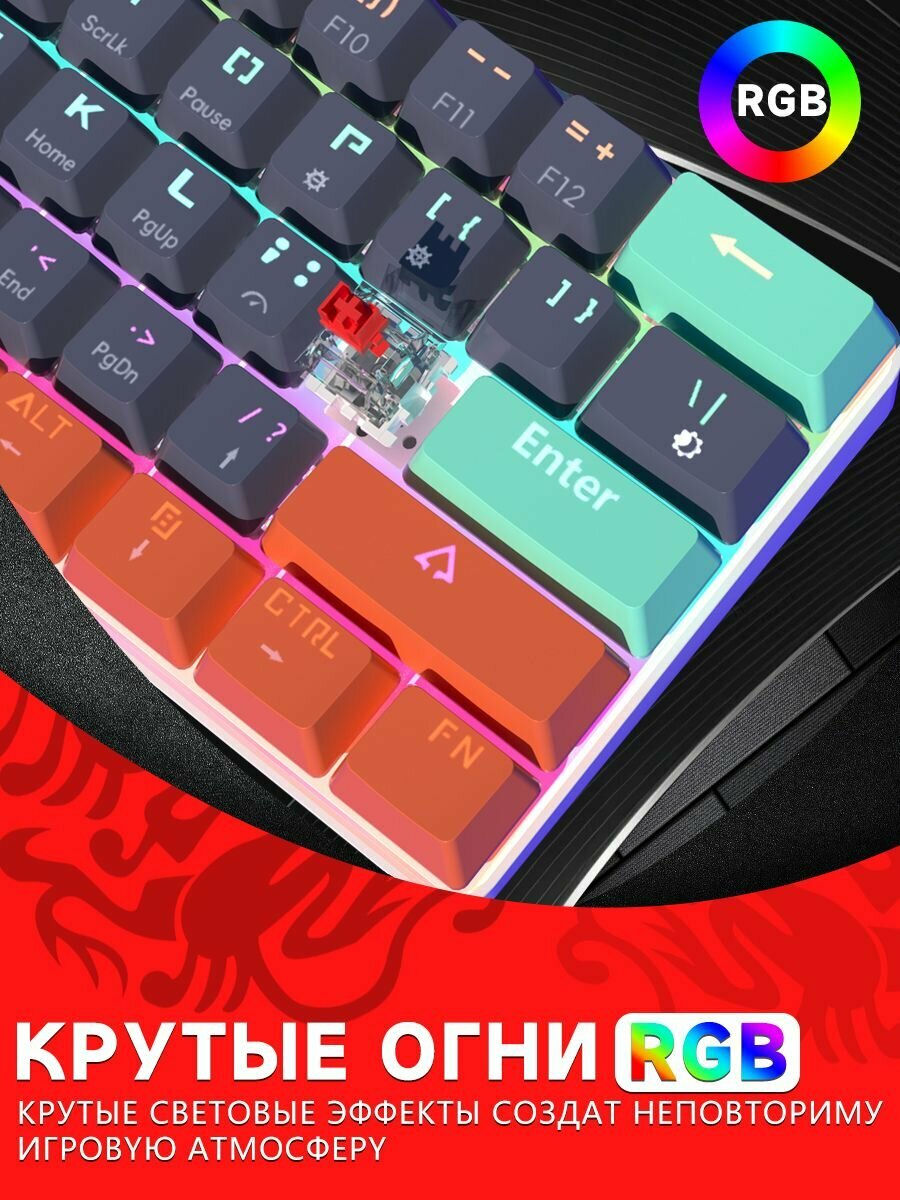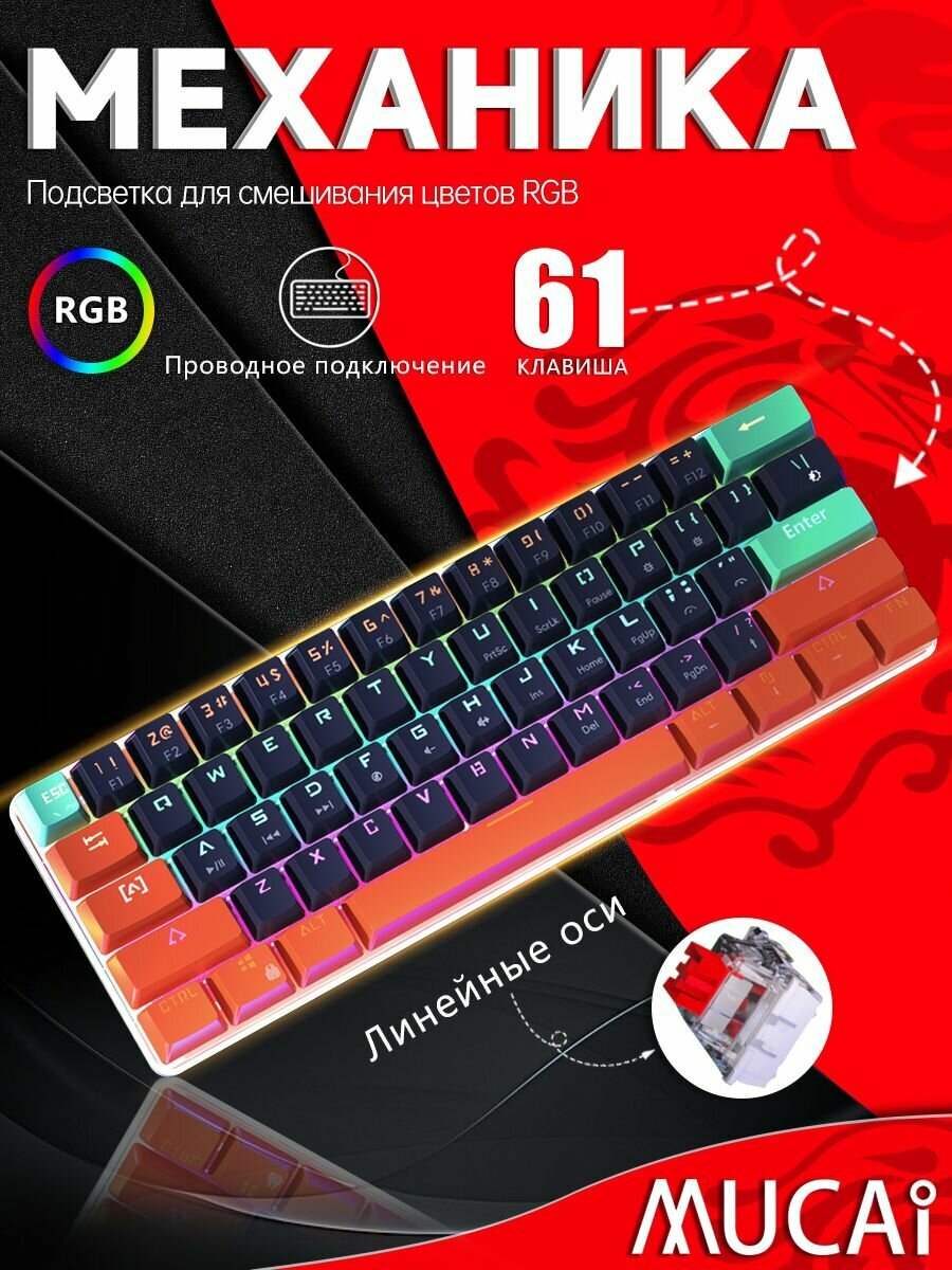 Механическая клавиатура MUCAI «MKA610», 61 кнопка, подключение Type-C, RGB-подсветка: сравнение цен, характеристики, фото, актуальное наличие и цены.