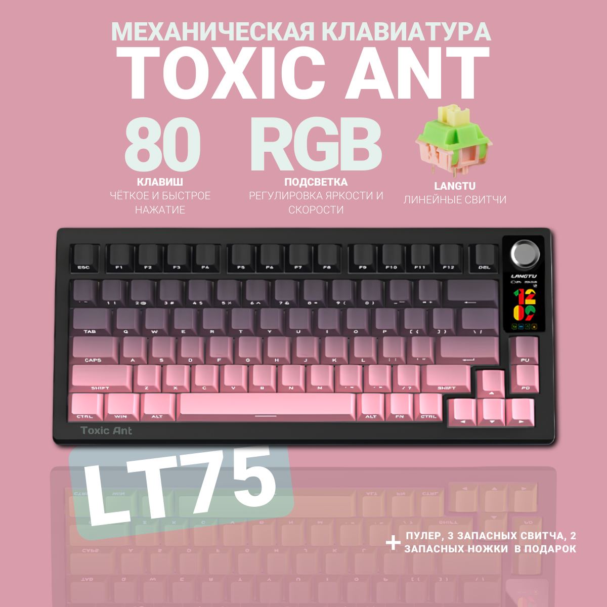 Купить Механическая клавиатура с подсветкой и экранчиком LANG TU LT75, Черный и розовый с доставкой по всей России. Механическая клавиатура с подсветкой и экранчиком LANG TU LT75, Черный и розовый: сравнение цен, характеристики, фото, актуальное наличие и цены.