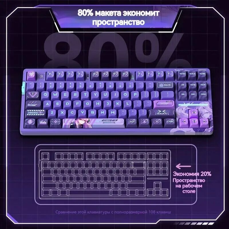 Купить VGN Игровая клавиатура беспроводная V87PRO, Английская раскладка, сиреневый с доставкой по всей России.