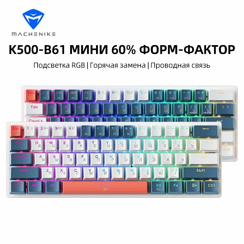 Механическая мини-клавиатура Machenike K500-B61 60% синяя/красная/коричневая, RU Red Switch: сравнение цен, характеристики, фото, актуальное наличие и цены.