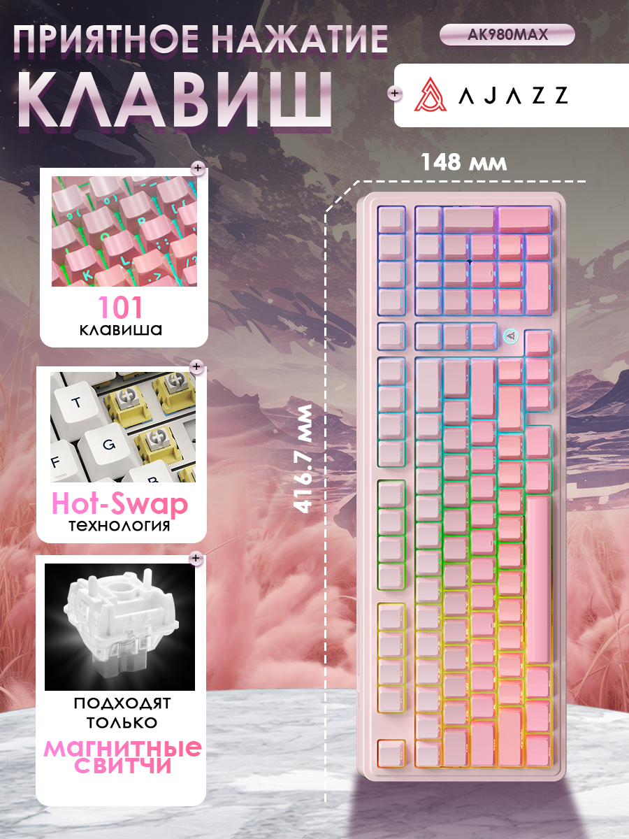 Механическая проводная клавиатура AJAZZ AK980 MAX Magnetic Powder Switch с RGB подсветкой , Русская раскладка: сравнение цен, характеристики, фото, актуальное наличие и цены.