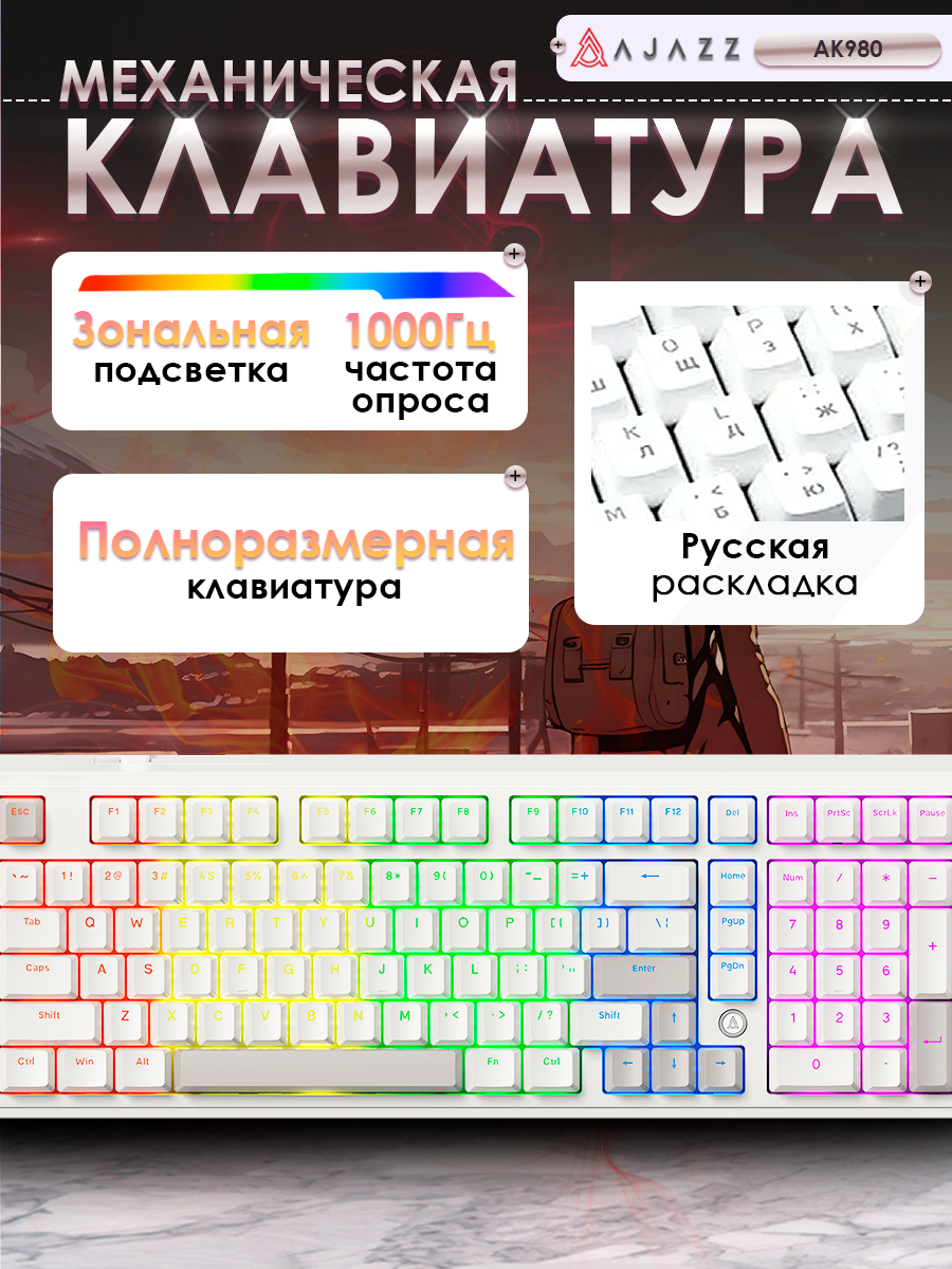 Механическая проводная клавиатура AJAZZ AK980 Red Switch с зональной подсветкой: сравнение цен, характеристики, фото, актуальное наличие и цены.