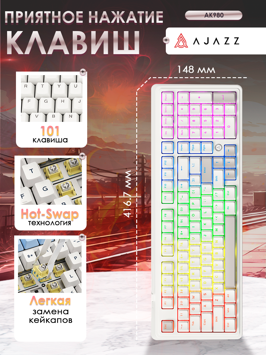 Купить Механическая проводная клавиатура AJAZZ AK980 Red Switch с зональной подсветкой с доставкой по всей России.