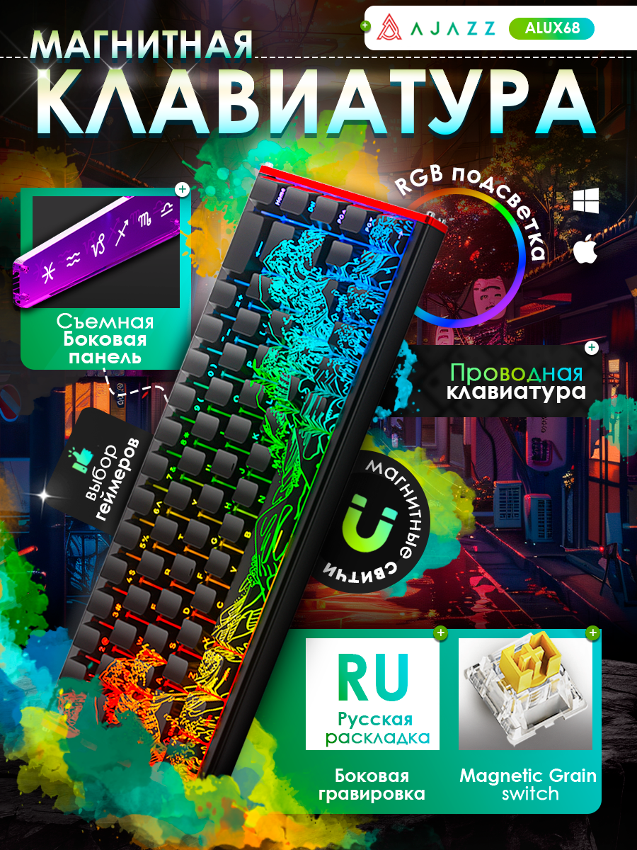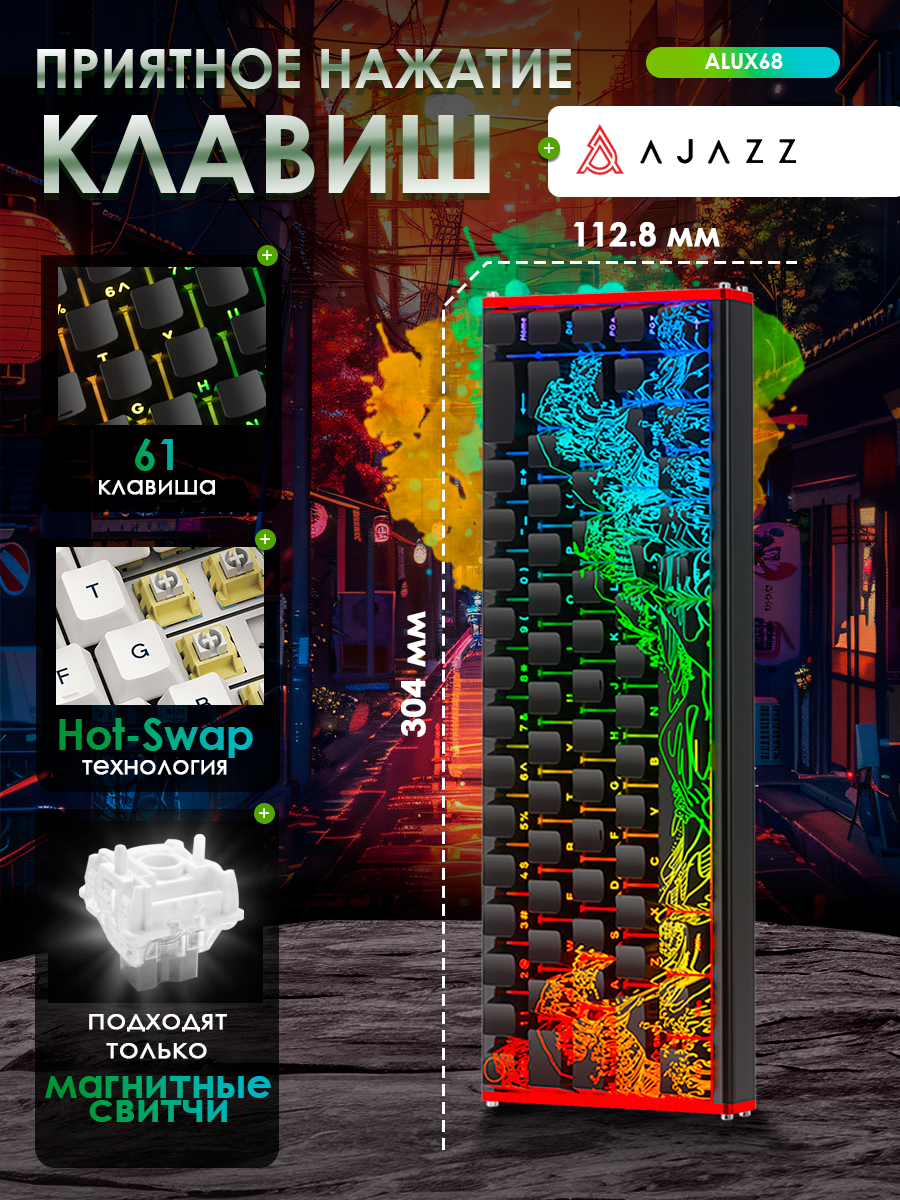 Купить Механическая проводная клавиатура AJAZZ ALUX68 Magnetic Grain Switch с RGB подсветкой,Русская раскладка с доставкой по всей России.