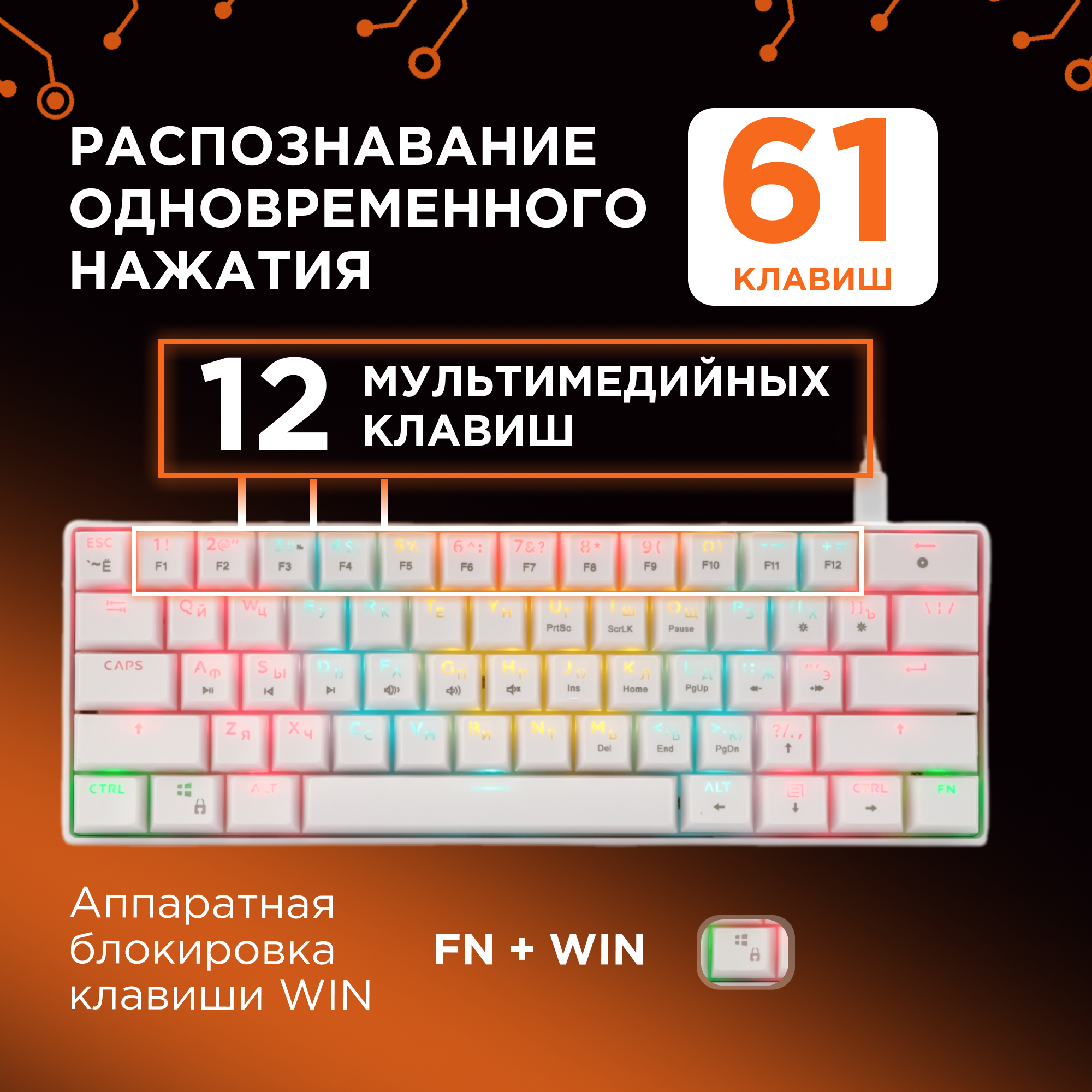 Купить Механическая проводная клавиатура Гарнизон белая 61 клавиша подсветка Rainbow коричневые свитчи кабель 1.5 метра GK-400GL-W с доставкой по всей России. Механическая проводная клавиатура Гарнизон белая 61 клавиша подсветка Rainbow коричневые свитчи кабель 1.5 метра GK-400GL-W: сравнение цен, характеристики, фото, актуальное наличие и цены.