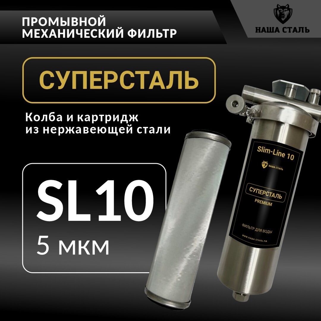 Купить Механический фильтр для воды из нержавеющей стали «Суперсталь» SL10 — 5 мкм, промывной с доставкой по всей России. Механический фильтр для воды из нержавеющей стали «Суперсталь» SL10 — 5 мкм, промывной: сравнение цен, характеристики, фото, актуальное наличие и цены.