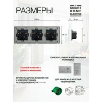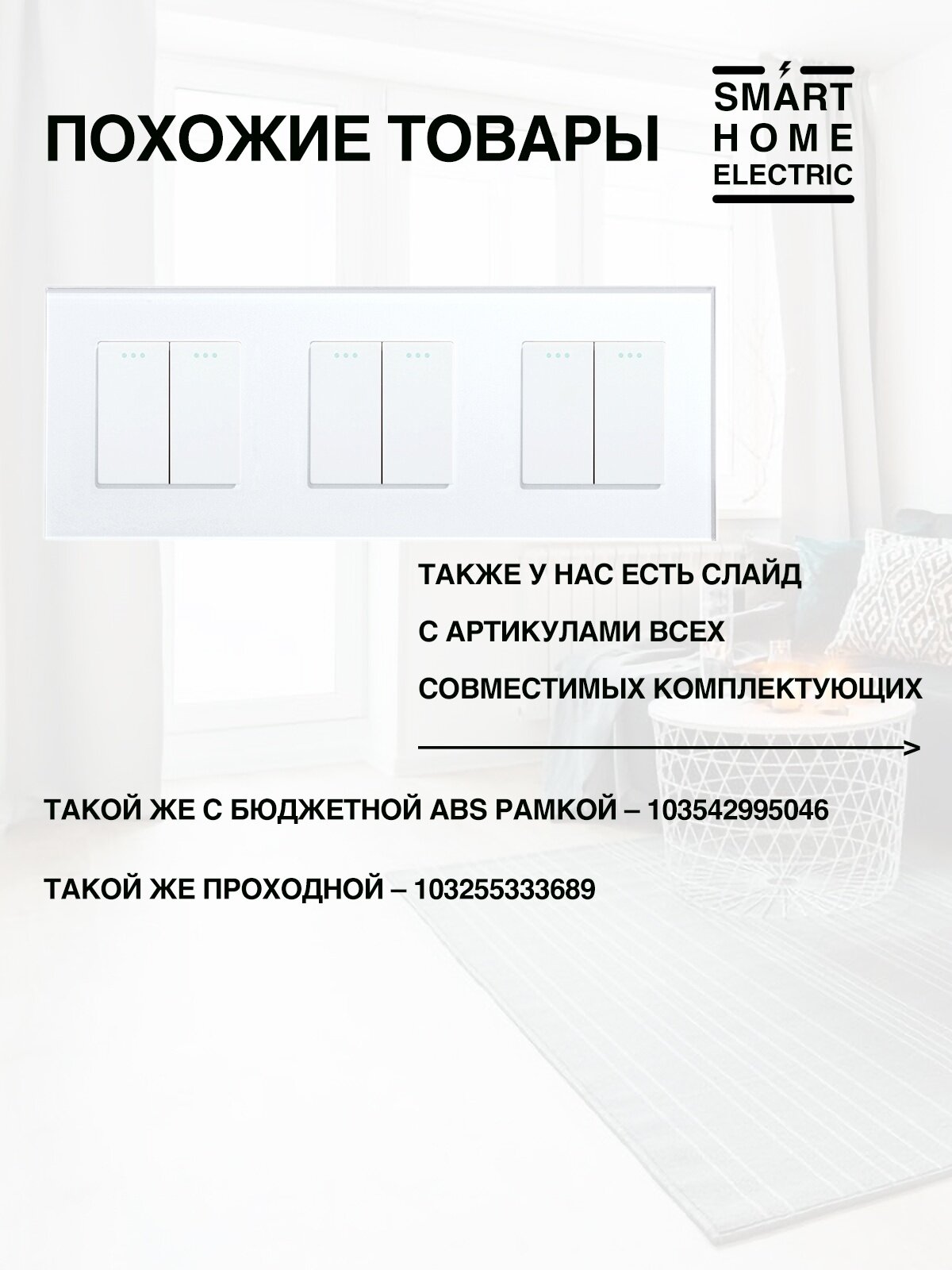 Тройной механический выключатель на шесть клавиш в стеклянной рамке белого цвета. Надежный и недорогой выключатель в современном дизайне. Это готовый комплект для установки, докупать ничего не нужно. Устанавливается в тройной стандартный круглый подрозетник. – Рамка из натурального стекла 228 на 86 мм. Выпирает от стены всего на 10 мм. Выглядит стильно, легко вписывается в любой интерьер. – Блок механического выключателя . На каждой клавише есть флуоресцентные точки для лучшей видимости выключателя в темноте. Все остальные розетки и выключатели есть в наличии в нашем магазине