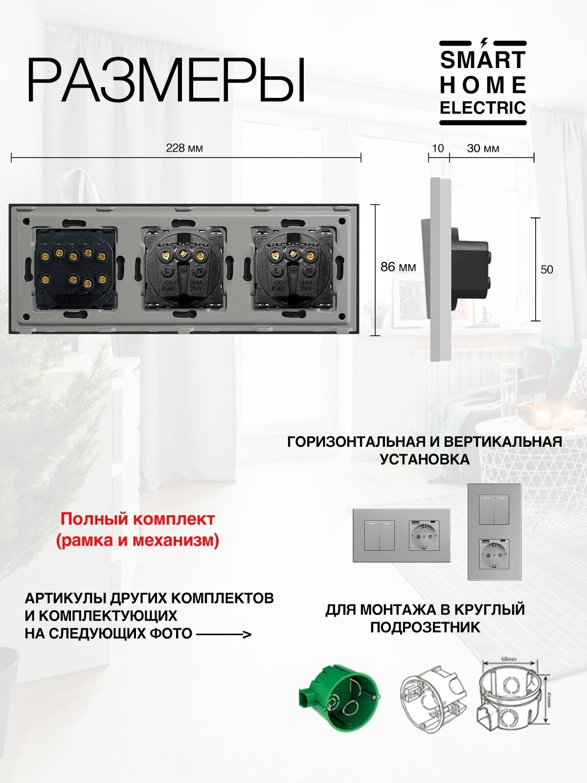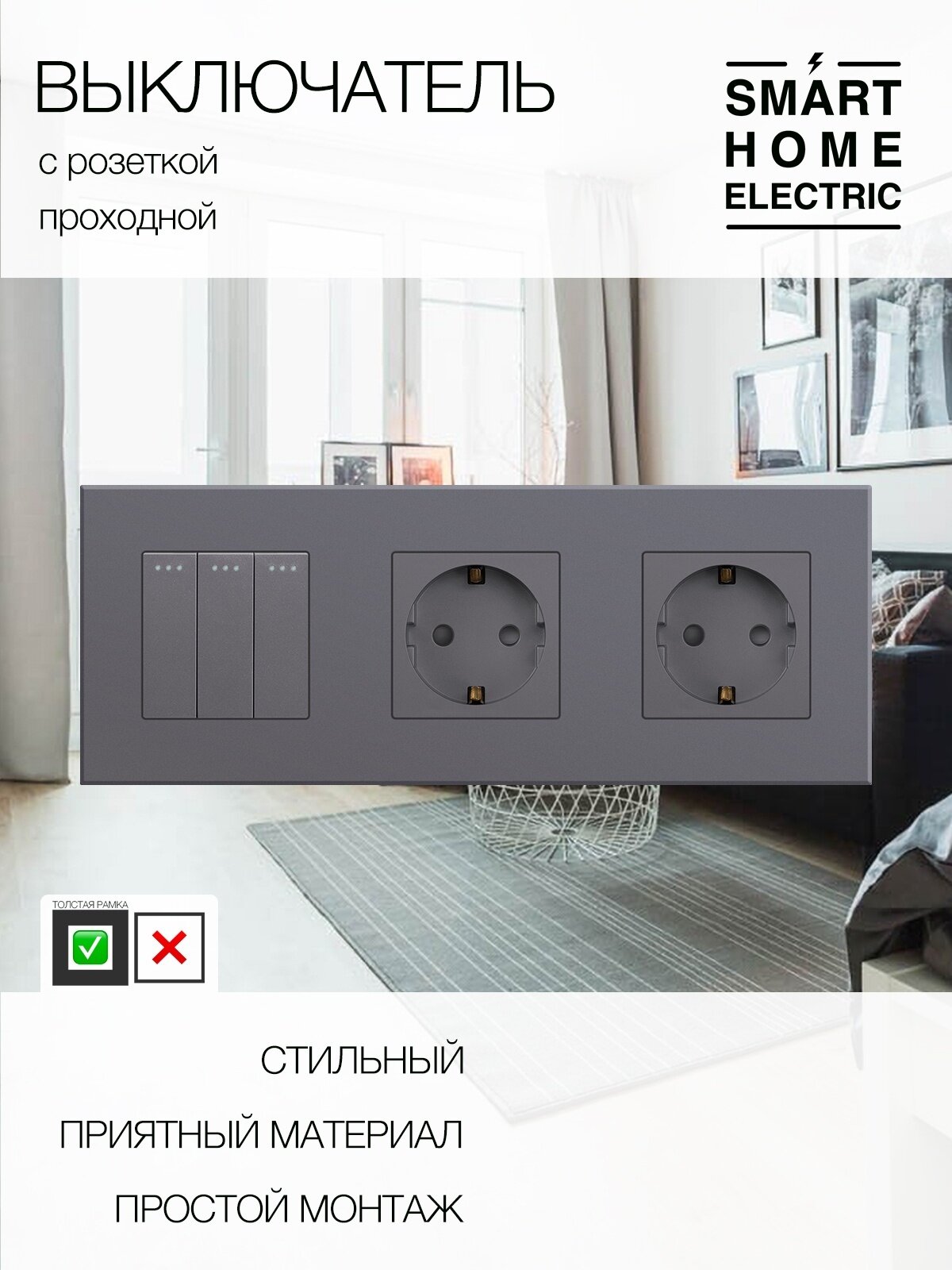 Механический выключатель с розеткой, проходной, рамка ABS, 3 поста (3кл.+2роз.): сравнение цен, характеристики, фото, актуальное наличие и цены.
