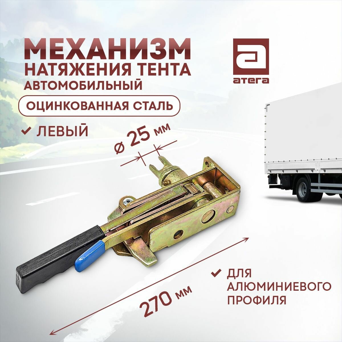 Натяжитель тента фургона, прицепа с трещоткой применяется на грузовых автомобилях и прицепах, оборудованных тентом, для натяжения тентового полотна автомобильного кузова.