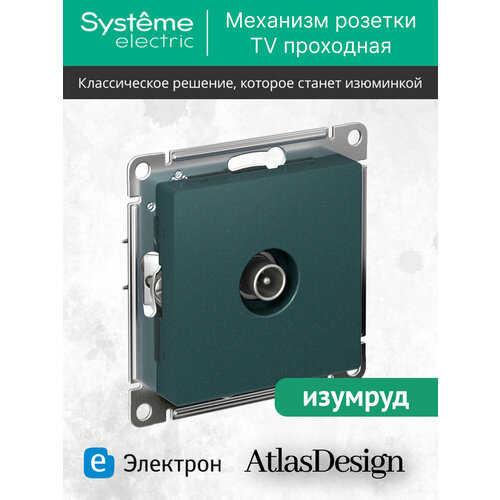 Механизм телевизионной розетки Systeme Electric AtlasDesign изумруд - это надежное и стильное решение для подключения телевизора к телевизионной сети.