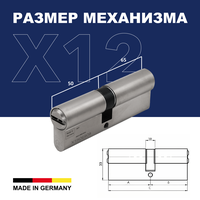 Двухсторонний 12-ти пинный, евро-профильный цилиндр в исполнении ключ-ключ с 5 перфорированными реверсивными ключами и картой безопасности. Цилиндр оснащен всеми надёжными защитами от наиболее распростаненных методов вскрытия и взлома. Запирающая система оснащена запатентованной системой упора ключа как в цилиндре, так и в ключе. Система "антипаника" позволит открыть дверь снаружи даже при вставленном изнутри ключе. Благодаря используемым материалам внутренний механизм практически не подвержен износу в процессе эксплуатации. Получен сертификат европейской лабораторий SKG**.