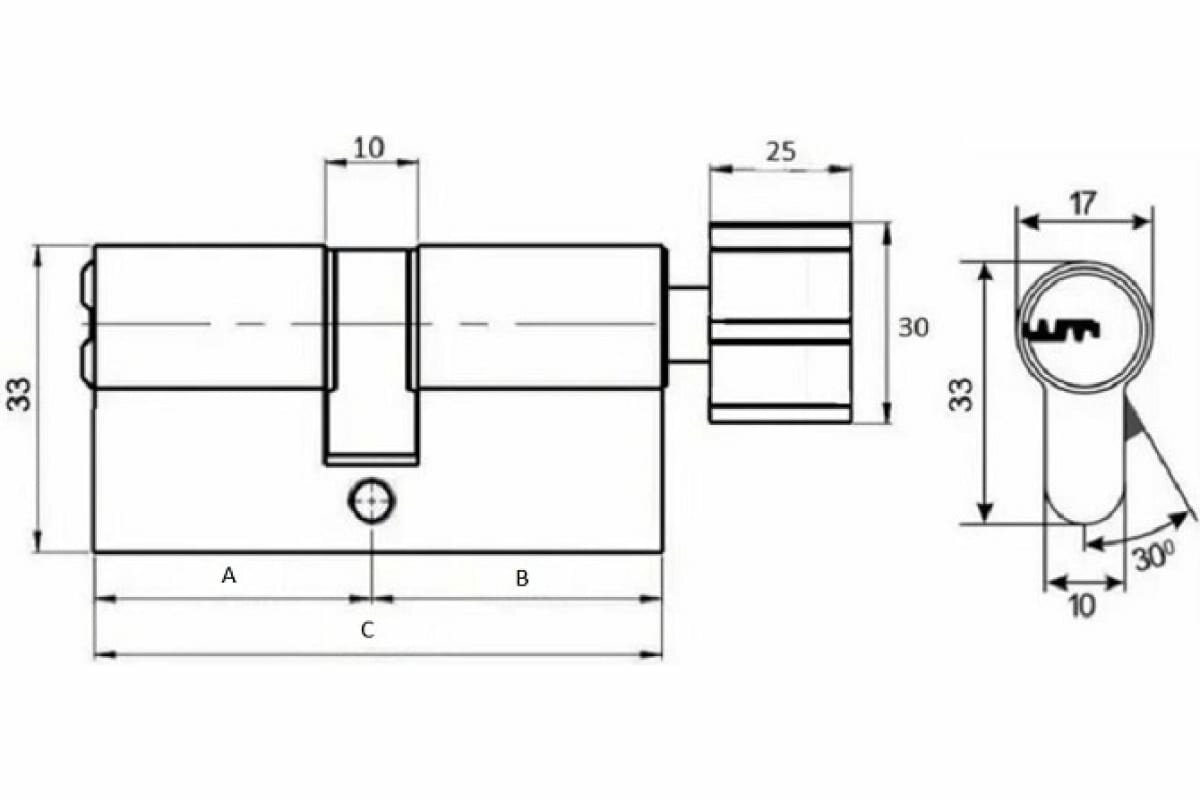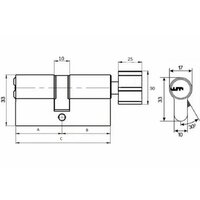 Двухсторонний 12-ти пинный, евро-профильный цилиндр в исполнении ключ-вертушка с 5 перфорированными реверсивными ключами и картой безопасности. Длина штока - 65мм, диаметр 8мм. Цилиндр оснащен всеми надёжными защитами от наиболее распростаненных методов вскрытия и взлома. Запирающая система оснащена запатентованной системой упора ключа как в цилиндре, так и в ключе. Система "антипаника" позволит открыть дверь снаружи даже при вставленном изнутри ключе. Благодаря используемым материалам внутренний механизм практически не подвержен износу в процессе эксплуатации. Получен сертификат европейской лабораторий SKG**.