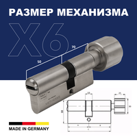 Механизм цилиндровый ABUS X6430 в исполнении ключ/вертушка, 6-ти пинный, материал корпуса - латунь, плаг изготовлен из многокомпонентного порошкового сплава, пять перфорированыых ключей с длинной шейкой позволяет использовать цилиндр с любыми видами броненакладок. Цвет - матовый никель. Имеется защита от наиболее распространённых методов вскрытия - от манипуляций отмычками, высверливания и бампинга. Производство Германия.