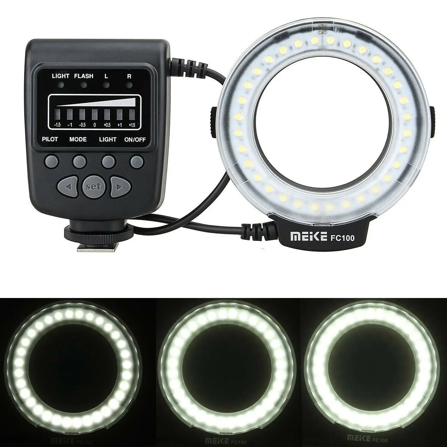 Meike FC-100 FC100 ручная светодиодная макро-Кольцевая вспышка фотовспышка с 7 переходными кольцами для цифровой зеркальной камеры Canon Nikon Olympus Pentax: сравнение цен, характеристики, фото, актуальное наличие и цены.