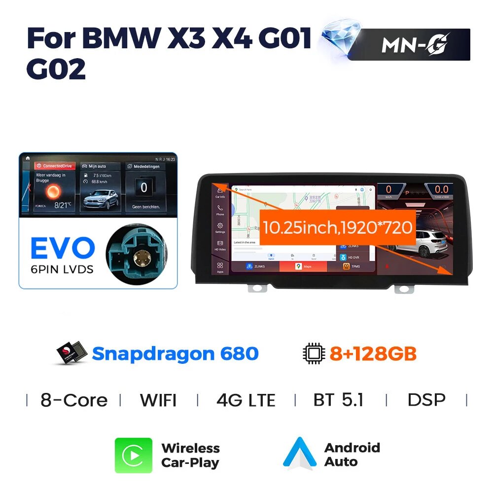 MEKEDE Snapdragon Android беспроводной Carplay GPS интеллект мультимедийный плеер 2-диновое автомобильное радио для BMW X3 G01 X4 G02 2018-2022 EVO, 8 128GB EVO 680: сравнение цен, характеристики, фото, актуальное наличие и цены.