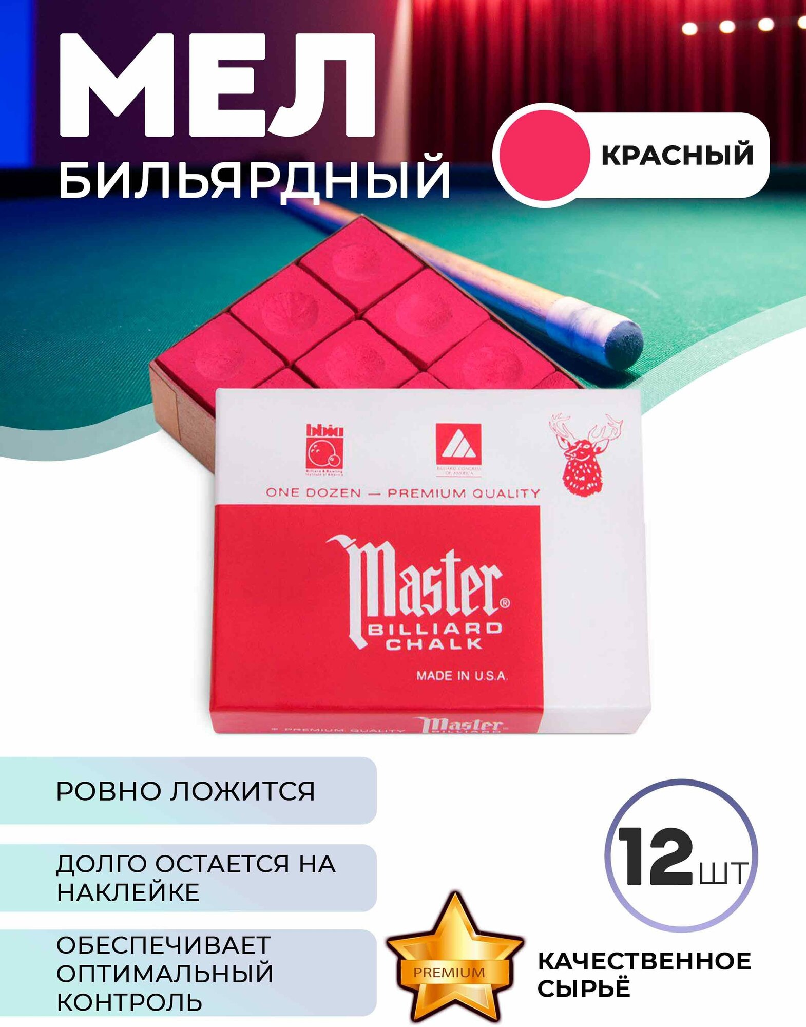 Основные характеристики бильярдного мела мел Master: