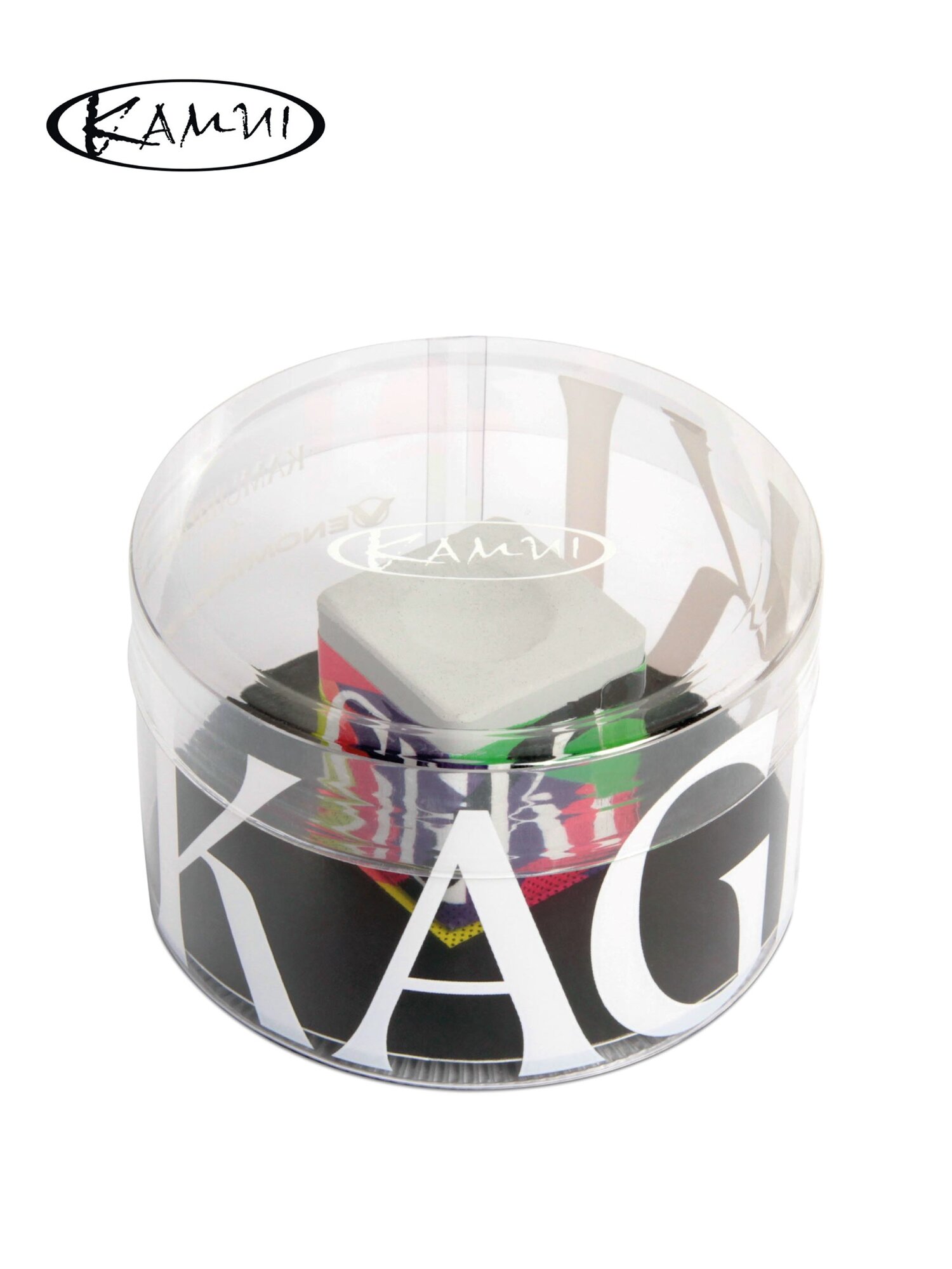 Мел Kamui Kageki упакован в индивидуальный пластиковый тубус. Это уменьшает воздействие внешней среды на структуру материала. Мел рекомендуется хранить в закрытом состоянии, для чего используются фирменные силиконовый пенал и держатель Kamui.