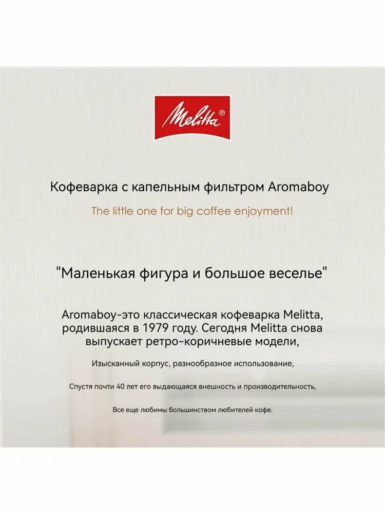 Капельная кофеварка Melitta Aromaboy сочетает в себе классический дизайн в стиле ретро и современные технологии, что делает ее идеальным выбором для любой кухни.