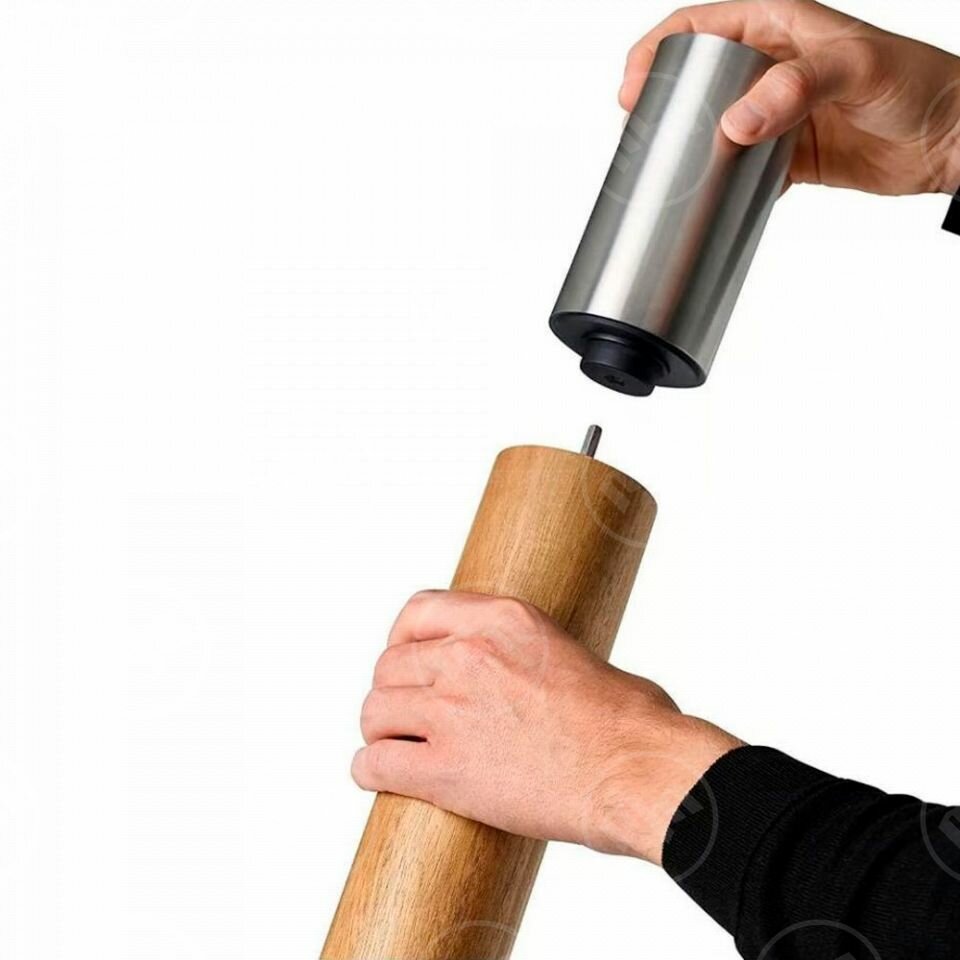 Артикул: MP824. Классификатор : Кухонные аксессуары. Классификатор : Механические мельницы. Категория : Мельницы для перца. Категория : Мельницы для соли. Вес (г) : 365. Материал : Нержавеющая сталь, акация . Страна изготовитель : Китай. Покрытие или обработка : Лак на водной основе. Компания производитель : AdHoc Entwicklung und Vertrieb GmbH, Im Pfeifferswörth 16, 68167 Mannheim, Germany. Модель / Семейство : AdHoc Ikon. Диаметр (см) : 6.0. Назначение мельницы : Для перца и соли. Измельчительный механизм : Керамический CeraCut®. Регулировка помола : Ручная регулировка. Высота (см) : 40.00. Страна бренда : Германия. Цвет : Натуральный. AdHoc Design – немецкий бренд с яркой индивидуальностью! Основанный в 1995 году, он и до сих пор следует принципу развития «форма идет за функцией». Дизайн подчиняется главенству функциональности и AdHoc создает простые в использовании продукты, отлично дополняющие кухню. Помимо мельниц, винных и чайных аксессуаров для домашнего использования, компания также предлагает ряд практичных помощников для индустрии HoReCa, которые, например, позволяют стильно сервировать завтрак в форме шведского стола. За два с половиной десятилетия AdHoc получили более 50 наград за дизайн, и популярность среди пользователей только подтверждает успех компании. Мельницы AdHoc продуманы до мельчайших деталей и завораживают своей простой элегантностью. Поэтому они не только красивы и удобны, но и обладают измельчающими механизмами, которые гарантируют первоклассный помол, дающий аромату приправы возможность раскрыться наиболее полно. Корпуса мельниц изготавливаются из акрила и пластика, нержавеющей стали и натурального дерева, а измельчающий механизм CeraCut – из высококачественной керамики, не подвержен ржавчине и износу. Электрические мельницы оснащены подсветкой. Мельница Ikon имеет высокопроизводительный керамический механизм CeraCut для измельчения перца и соли. Керамический механизм прочнее стали и имеет чрезвычайно долгий срок службы, поскольку он устойчив к износу и коррозии. Помол легко регулируется от мелкого до грубого – всего 12 вариантов. В конструкции никаких хрупких и неудобных деталей, только высококачественная нержавеющая сталь и акрил, не содержащий бисфенол А. Для очистки внешней поверхности мельницы необходимо протирать ее сухой и мягкой тканью.
