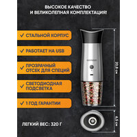 Мельница для специй электрическая, гравитационная Homaider, USB использование без подзарядки, 7 уровней помола, щетка для чистки в комплекте: сравнение цен, характеристики, фото, актуальное наличие и цены.