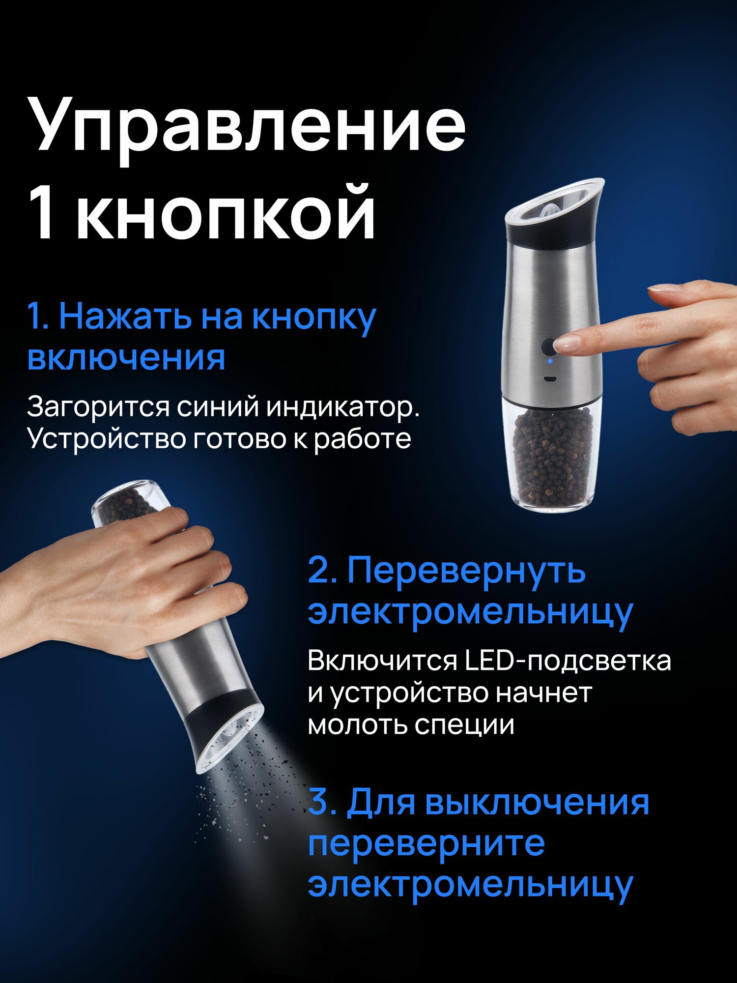 Купить Мельница для специй электрическая с подсветкой, набор 2 шт на подставке с доставкой по всей России. Мельница для специй электрическая с подсветкой, набор 2 шт на подставке: сравнение цен, характеристики, фото, актуальное наличие и цены.