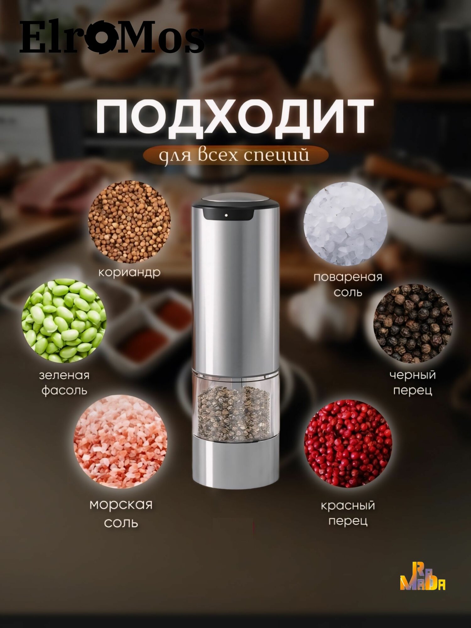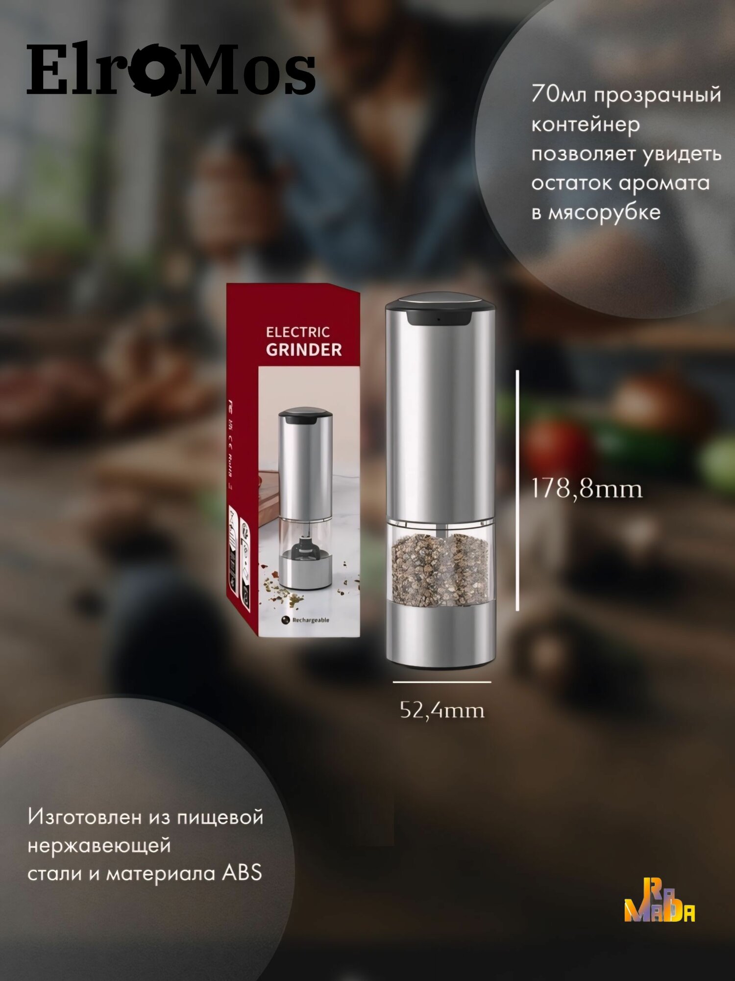 - Мельница изготовлена из прочной нержавеющей стали. Модель изысканной формы.
