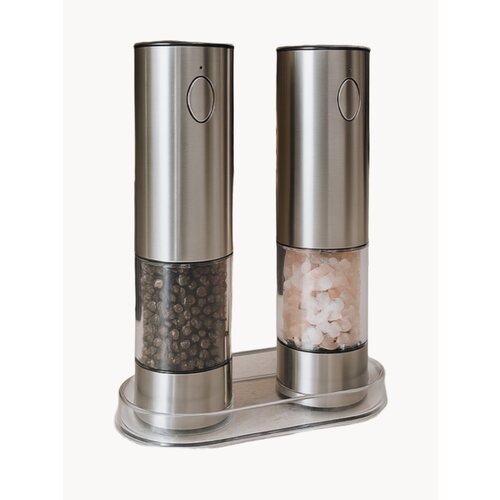 Представляем удобный и стильный набор из 2 электрических мельниц для соли и перца. Каждая аккумуляторная электромельница оснащена керамическими жерновами, регулировкой помола, встроенной подсветкой и простым кнопочным управлением: нажали — начали молоть, отпустили — перестали. Электроперечницы выполнены из нержавеющей стали с металлическим оттенком, хорошо смотрятся на столе и приятно лежат в руке. Внутренний отсек на 95 мл вмещает солидный запас специй — засыпать легко: корпус снизу отвинчивается, и приправы засыпаются прямо через широкое горлышко. Каждое устройство работает без батареек — внутри находится литиевый аккумулятор, а подзарядка осуществляется через USB-разъём, расположенный в верхней части измельчителя. Два кабеля позволят заряжать обе автоматические сольницы одновременно. Полная зарядка занимает 2 часа и обеспечивает работу электронных дробилок в течение нескольких месяцев при обычном использовании. Прозрачная пластиковая подставка помогает держать мельнички на своём месте, защищает столешницу от просыпавшихся остатков и придаёт комплекту завершённый вид. Независимо от того, используете ли вы их как солонки или перцемолки, этот наборчик станет отличным подарком и достойным элементом интерьера. Упаковано в дополнительную коробку для надежной доставки, есть инструкция на русском. Идеальное сочетание функциональности, стиля и комфорта — всё, что нужно от современной электросольницы и электро перечницы.