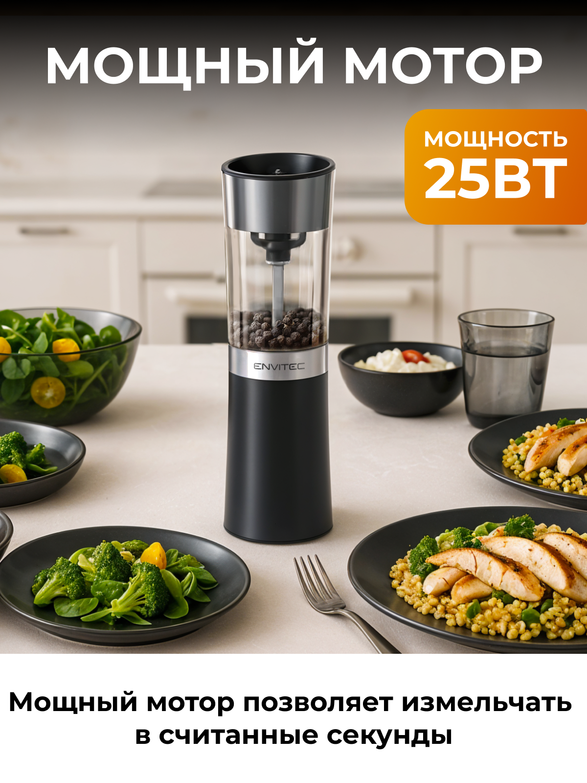 Мельница для специй Envitec E-Grinder Solo Max 15, с гироскопом, электрическая, черный цвет: сравнение цен, характеристики, фото, актуальное наличие и цены.