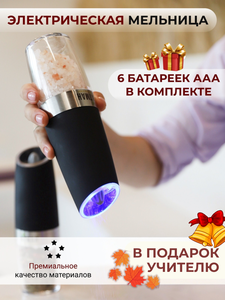 Мельница для специй, гравитационная для соли и перца электрическая с подсветкой автоматическая, АТМАН: сравнение цен, характеристики, фото, актуальное наличие и цены.